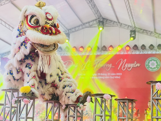 Trước khi kết thúc buổi lễ, Đại đức Thích Giác Hiệu cùng các Phật tử, du khách thập phương, nhân dân địa phương cử hành nghi lễ dâng hương, bạch Phật, tụng kinh khai đàn Dược Sư cầu nguyện thế giới hòa bình, chúng sinh an lạc, Phật pháp trường tồn nhân dịp đầu xuân.