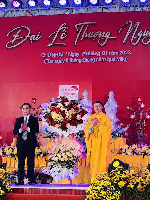 Nhân dịp này , đại diện chính quyền quận Đồ Sơn đã lên phát biểu, khẳng định lại giá trị văn hóa, tâm linh của chùa Hang. Đồng thời, tri ân công đức của Hòa thượng trụ trì, cũng như Đại đức Thích Giác Hiệu, trong suốt thời gian vừa qua đã đồng hành cùng chính quyền các cấp, các Phật tử, nhân dân địa phương tổ chức rất nhiều chương trình từ thiện ý nghĩa. Đặc biệt là chương trình từ thiện “Xuân yêu thương” đã được các cấp chính quyền trong quận và nhân dân địa phương đánh giá cao, khẳng định vai trò của Phật giáo đối với vấn đề an sinh xã hội trên phương châm “ Phật giáo luôn đồng hành cùng Dân tộc”.