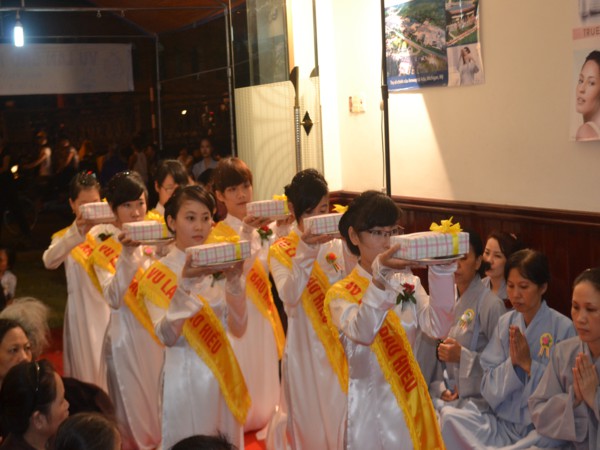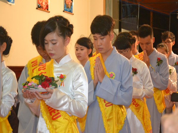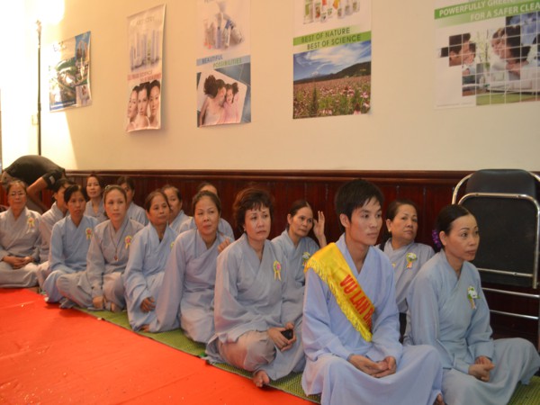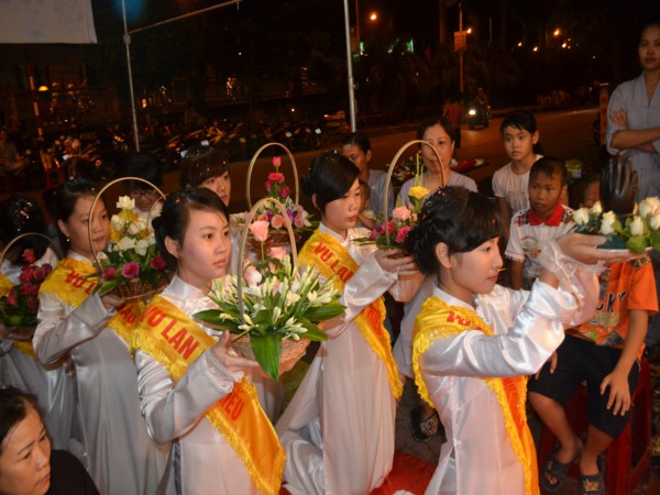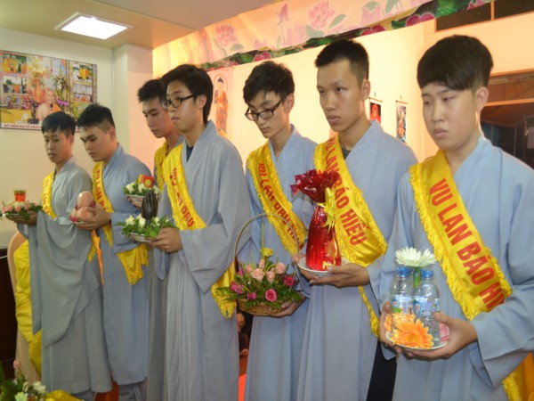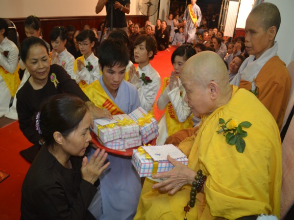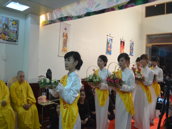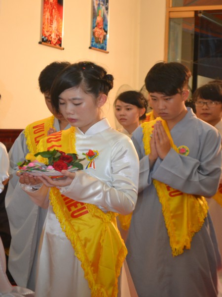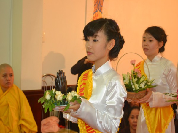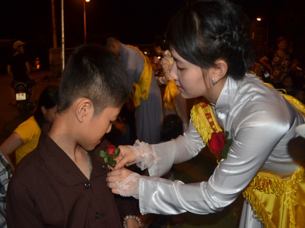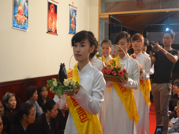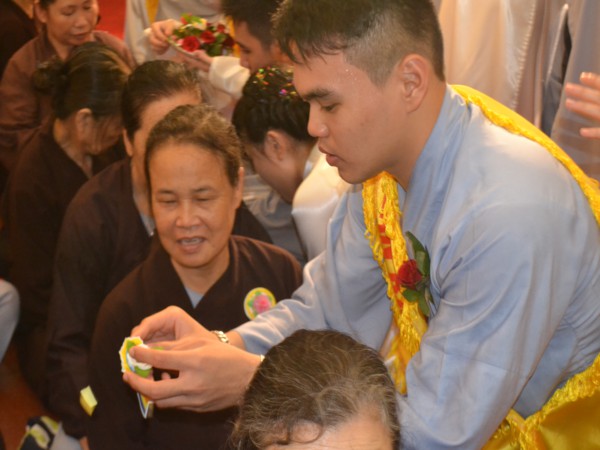 Chư tôn đức đã cử hành buổi lễ theo đúng nghi thức truyền thống. Sau nghi thức niệm Phật cầu gia hộ đó là nghi lễ Dâng hoa, dâng lục cúng và nghi thức cài hoa hồng. Trước khi những đóa hồng được cài lên ngực áo của quý Thầy, quý Phật tử, các Phật tử đã được nghe ý nghĩa của nghi thức ” Bông hồng cài áo” với những ngôn từ rất cảm động nhằm ca ngợi công lao trời biển của 2 đấng sinh thành.