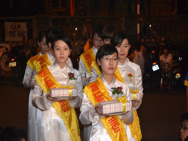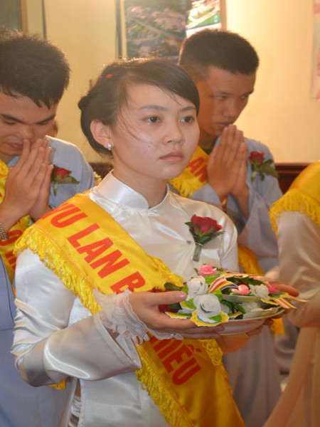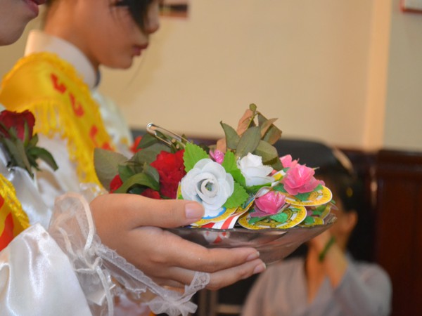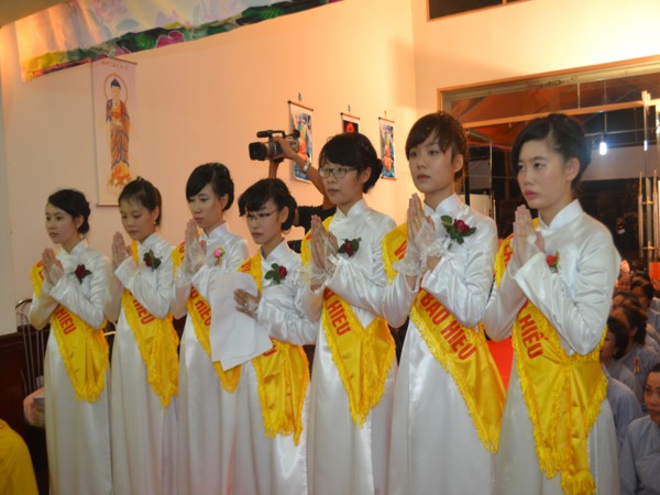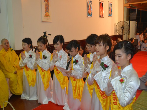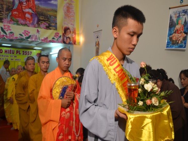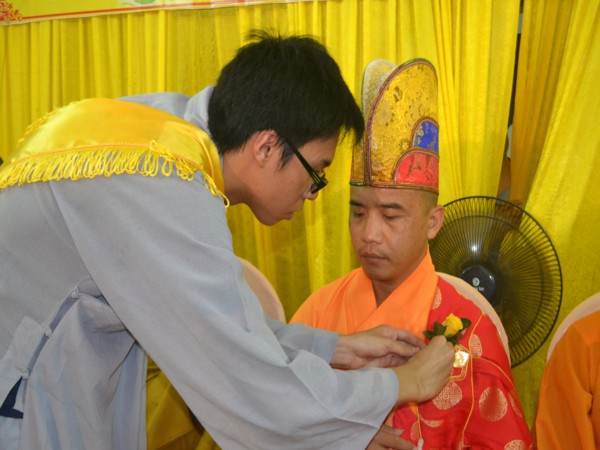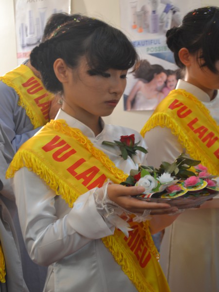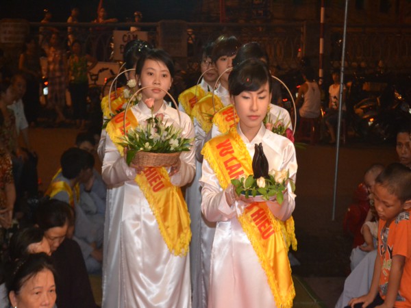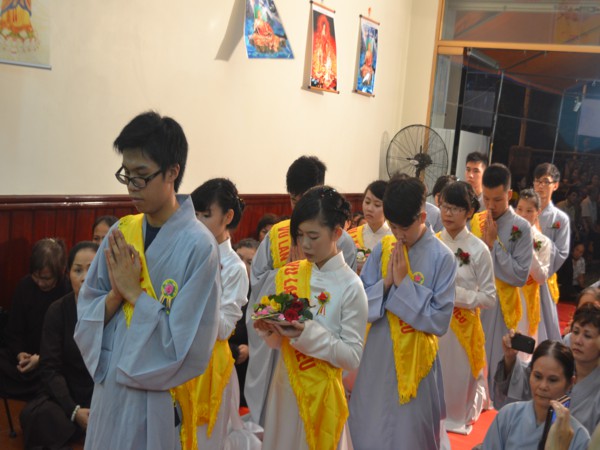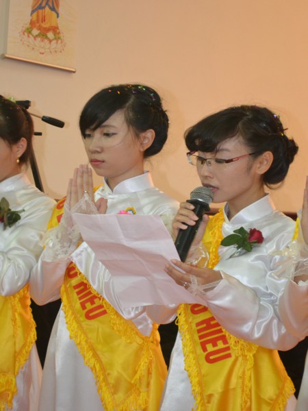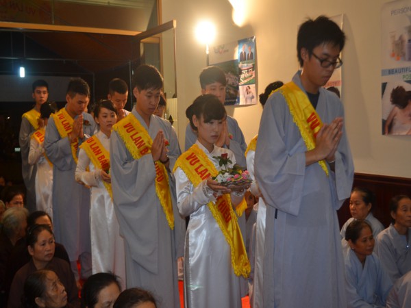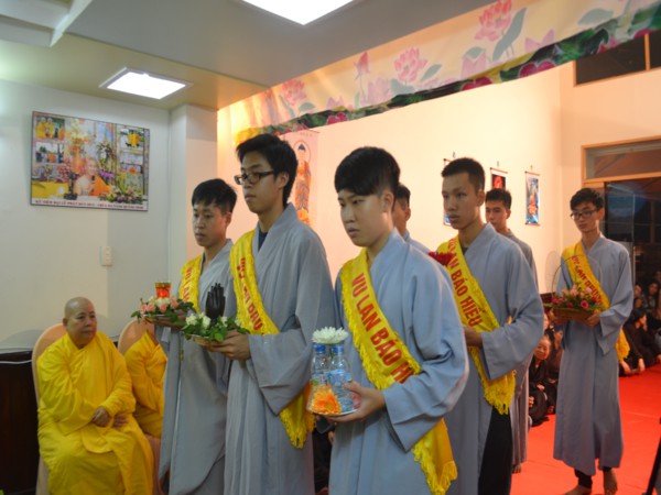 Chư tôn đức đã cử hành buổi lễ theo đúng nghi thức truyền thống. Sau nghi thức niệm Phật cầu gia hộ đó là nghi lễ Dâng hoa, dâng lục cúng và nghi thức cài hoa hồng. Trước khi những đóa hồng được cài lên ngực áo của quý Thầy, quý Phật tử, các Phật tử đã được nghe ý nghĩa của nghi thức ” Bông hồng cài áo” với những ngôn từ rất cảm động nhằm ca ngợi công lao trời biển của 2 đấng sinh thành.