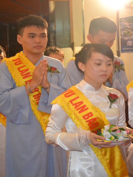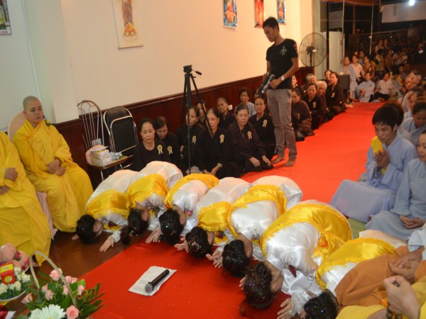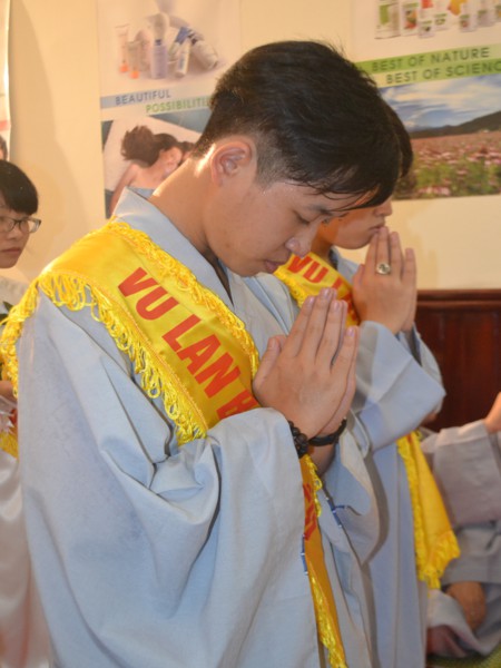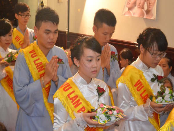 Trước khi kết thúc buổi lễ, các Phật tử đã làm lễ dâng y và thành tâm cúng dàng Chư tôn đức Tăng Ni nhân mùa Vu Lan – Báo Hiếu, hồi hướng công đức cho cha mẹ hiện tiền và cha mẹ đã quá vãng.