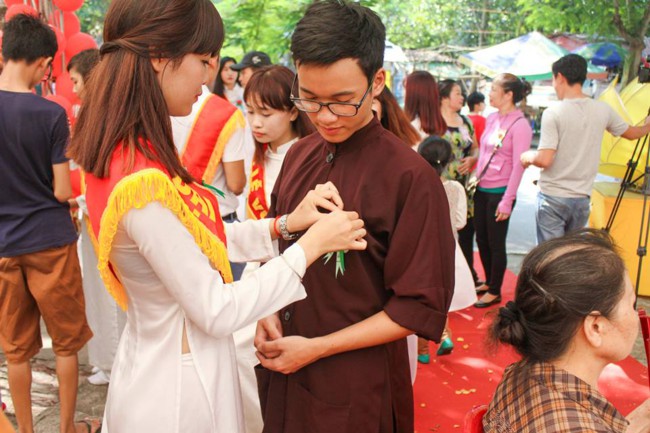 Phần quan trọng nhất cũng là những giây phút xúc động nhất của buổi lễ Vu lan, đó là nghi lễ Bông hồng cài áo, ai còn mẹ sẽ được cài lên ngực áo bên trái của mình một bông hồng màu đỏ và ai đã mất mẹ rồi sẽ cài lên ngực của mình một bông hồng màu trắng tượng trưng cho sự mất mát to lớn trong cuộc đời của mỗi chúng ta.