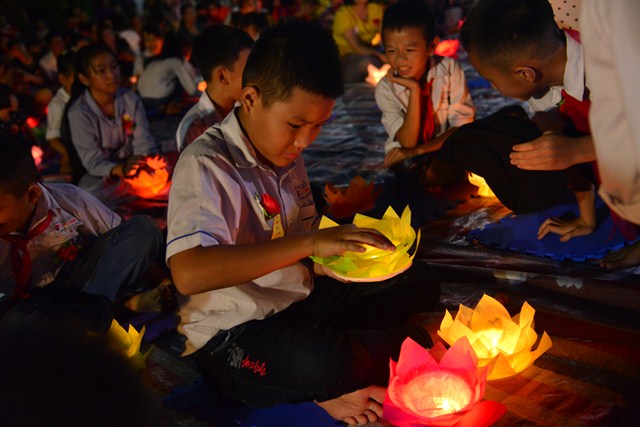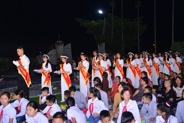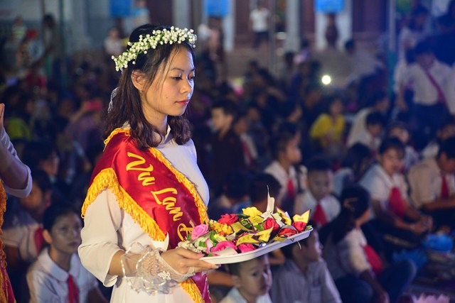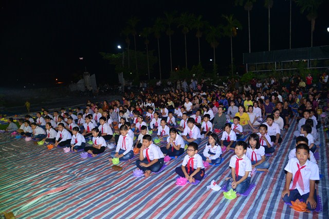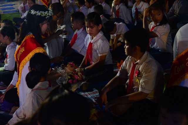 Các em học sinh trường tiểu học Lý Tử Trọng về tham dự đại lễ