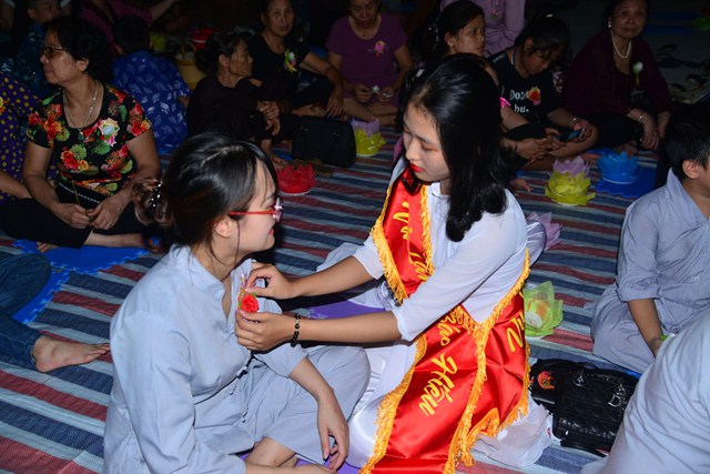 Phật tử Bích Ngọc tuyên đọc ý nghĩa cài hòa hồng