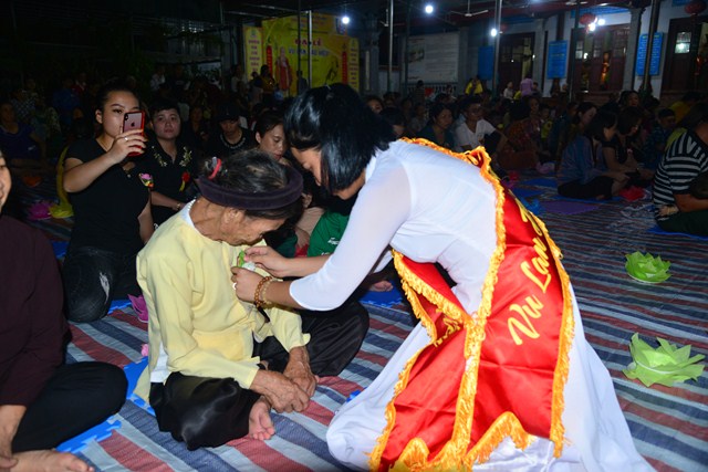 Phát biểu khai mạc buổi lễ, Sư thầy Thích Diệu Hướng chia sẻ: “ Trong kinh Phạm Võng Bồ Tát Đức Phật dạy: Hiếu là pháp chí đạo, hiếu danh vi giới hay: Hiếu tâm tức thị Phật tâm, hiếu hạnh vô phi Phật hạnh, nên người học đạo bồ đề, trước phải làm tròn hiếu đạo. Xưa kia Đức Phật Thích Ca đã từng lên cung trời Đao Lợi để tìm mẹ, về Ca Tỳ La Vệ để thăm cha. Đó cũng không ngoài hiếu tâm, hiếu hạnh mà Phật tổ đã đem pháp nhũ để cứu vớt song thân. Và cũng như gương hiếu hạnh của Ngài Mục Kiền Liên, cũng như các vị tổ sư…quý Ngài không vì hạnh nguyện thâm sâu, hay sự liễu ngộ của mình mà sao lãng hiếu ân. Ngược lại, luôn luôn lúc nào cũng đem đến cho cha mẹ một nguồn an lạc, khi cha mẹ còn tại thế hay đã quá vãng…”. Chính vì lẽ đó, chúng ta phải noi theo tấm gương hiếu hạnh của các Ngài, làm nhiều việc thiện lành và đem công đức đó hồi hướng cho cha mẹ hiện tiền, cũng như cha mẹ đã quá vãng.