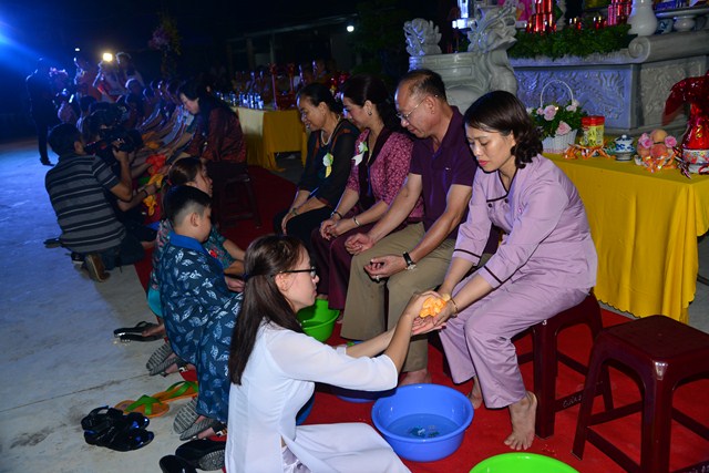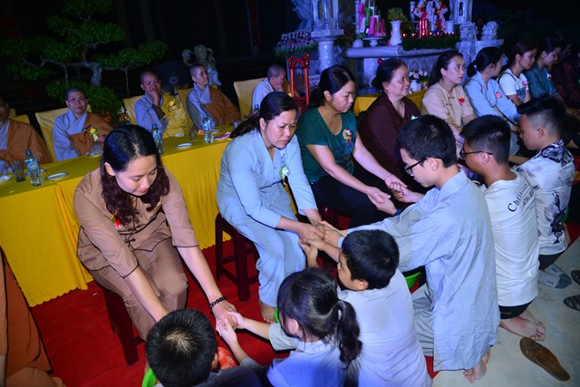 Trước khi kết thúc buổi lễ, chư tôn đức đã cùng các Phật tử và toàn thể đạo tràng cử hành nghi lễ dâng hương bạch Phật, lễ dâng đăng cúng dàng chư Phật và tri ân công sinh thành dưỡng dục của cha mẹ nhân mùa Vu lan Báo hiếu, cầu nguyện cho cha mẹ hiện tiền được tăng phúc, tăng thọ và cha mẹ quá vãng được siêu sinh Cực Lạc quốc.