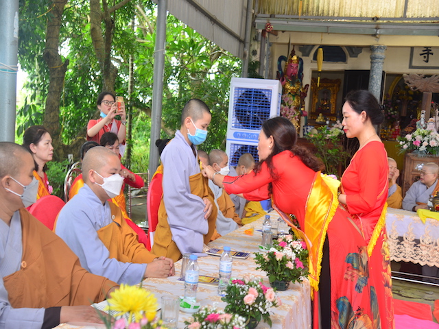 Nhân dịp này, các Phật tử đã noi theo tấm gương hiếu hạnh của Tôn giả Đại Hiếu Mục Kiền Liên dâng phẩm vật cúng dàng chư tăng hiện tiền, hồi hướng công đức cho ông bà, cha mẹ hiện tiền được tăng phúc, tăng thọ; ông bà cha mẹ tổ tiên đã quá vãng được siêu sinh về miền tịnh cảnh.