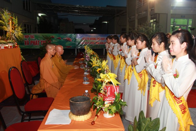Buổi lễ có sự chứng minh, tham dự của Thượng tọa Thích Thanh Định, trụ trì chùa Từ Xuyên (P.Hoàng Diệu, TP.Thái Bình) cùng chư Tăng bản tự. Buổi lễ do bà Nguyễn Thiên Lý, Phó Tổng Giám đốc Công ty May 10, Giám đốc Công ty May Thiên Nam cùng quý vị lãnh đạo Công ty chủ trì và có gần 700 anh chị em công nhân viên Công ty.