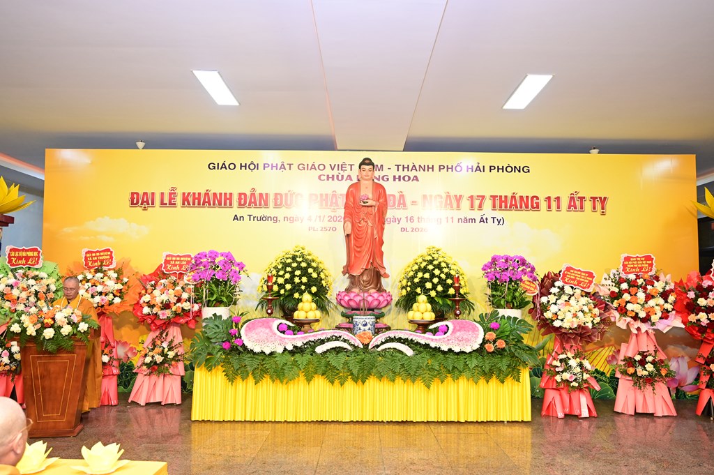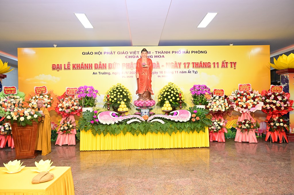 Quang lâm và chứng minh buổi lễ có sự hiện diện của Hòa thượng Thích Thanh Giác, Viện chủ Tổ đình Long Hoa, trưởng Ban điều hành hệ phái Linh Quang Trà Lũ Trung, Trưởng BTC đại lễ; Thượng tọa Thích Thanh Lợi, Phó ban kiêm Chánh thư ký Ban nghi lễ TƯ GHPGVN, trưởng Sơn môn Linh Quang Trà Lũ Trung; Thượng tọa Thích Bản Điền, Ủy viên Thường trực, Phó Chánh Văn phòng BTS GHPGVN thành phố, phụ trách Phật giáo xã An Trường; TT. Thích Giác Huy, ủy viên thường trực BTS GHPGVN thành phố Hải Phòng, phụ trách Phật giáo phường An Hải, cùng đông đảo chư Tôn thiền đức Tăng Ni trụ trì các chùa nội, ngoại thành của thành phố Hải Phòng và các tỉnh thành lân cận.