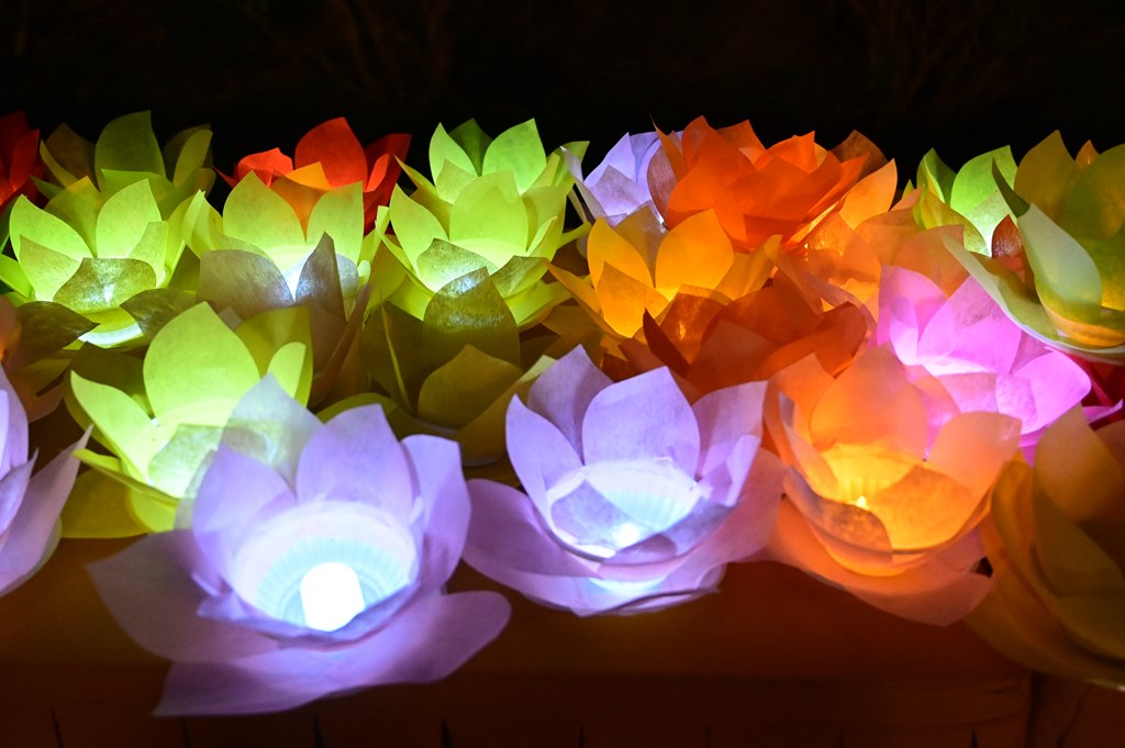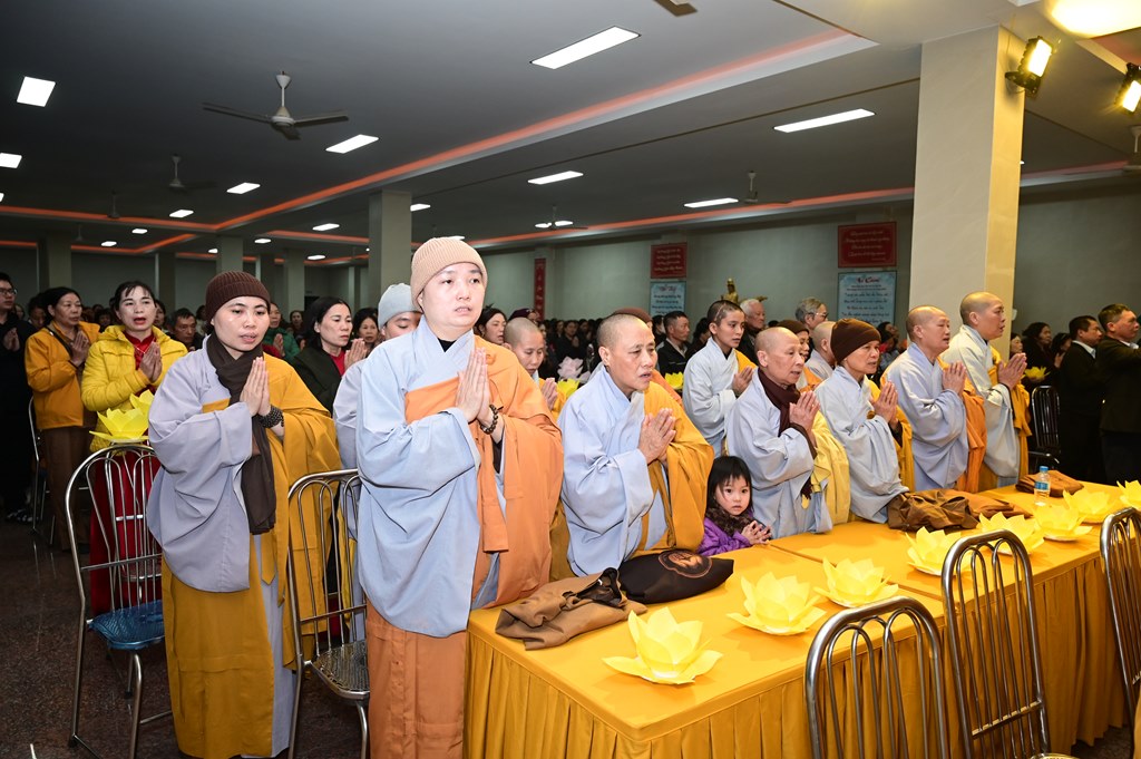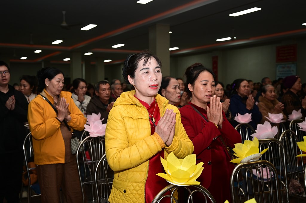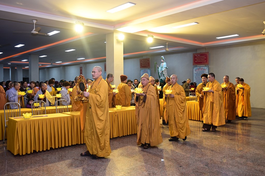 Tại buổi lễ, chư Tôn đức cùng toàn thể đại chúng đã thành kính dâng hương, bạch Phật, cầu nguyện thế giới hòa bình, nhân dân an lạc, Phật pháp xương minh. Tiếp đó, chư tôn đức Tăng Ni đã dâng hoa đăng, nhiễu Phật, niệm danh hiệu Đức Phật A Di Đà quanh khuôn viên chùa Long Hoa. Toàn thể đại chúng cầm ngọn nến trên tay với lòng tôn kính sâu sắc nhất nghĩ nhớ tới công lao của Đức Phật A Di Đà, ngọn nến lung linh huyền ảo đã dần dần được lan tỏa khắp khuôn viên chùa, làm ấm lại tâm hồn của mỗi người con Phật, cũng như không gian của buổi lễ. Với ánh sáng biểu tượng của lòng từ bi và trí tuệ ấy, quý Phật tử lại một lần nữa cảm nhận được tình thương của đức Từ phụ A Di Đà đã dành cho nhân loại.