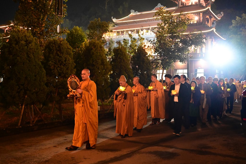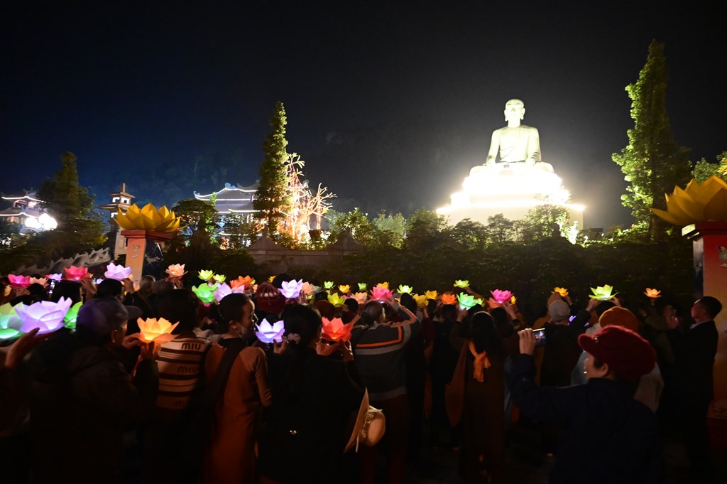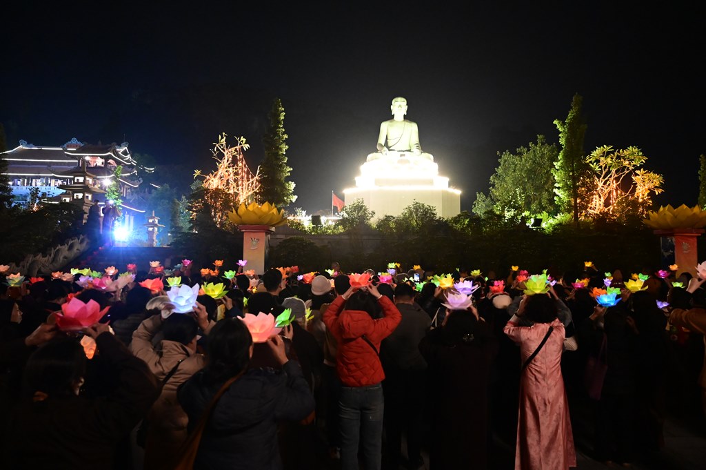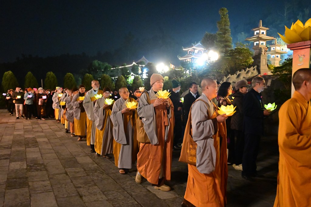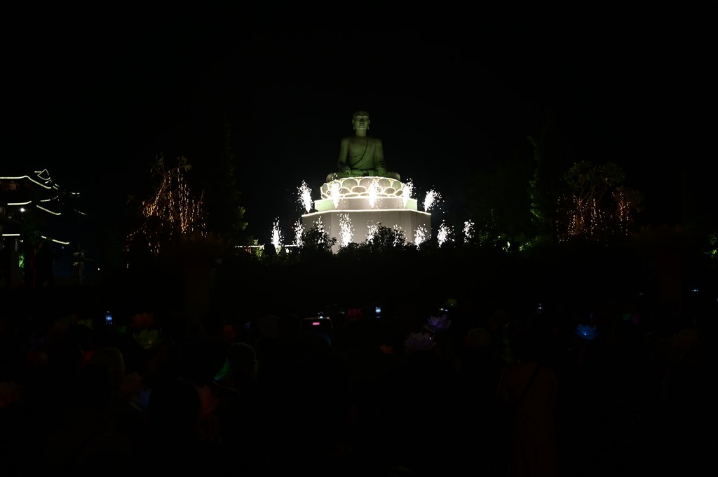 Kết thúc buổi lễ là màn bắn pháo hoa trước đại Phật tượng Trần Nhân Tông, kính mừng ngày khánh đản của đức Phật A Di Đà hòa chung với niềm hoan hỷ của mỗi người con Phật khắp năm châu.