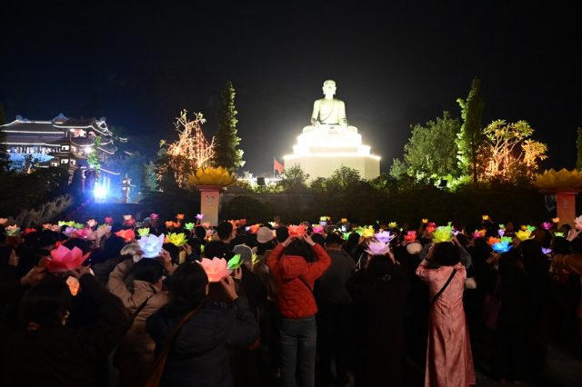 Chư tôn đức dâng hoa đăng cầu nguyện