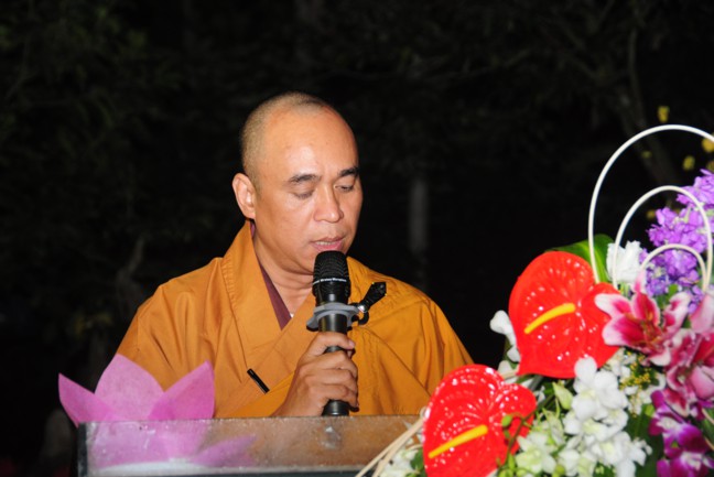 Đúng 19 giờ 30 phút, buổi lễ Hoa đăng kính mừng ngày đản sinh của Đức Phật A Di Đà đã chính thức được diễn ra. Sau nghi thức niệm Phật cầu gia bị, Đại đức Thích Tục Nhân – Trưởng ban nghi lễ GHPGVN Tp. Hải Phòng đã lên tuyên đọc Diễn văn khai mạc Đại lễ hoa đăng kính mừng khánh đản Đức Phật A Di Đà PL. 2559 – DL. 2015. Việc tổ chức mừng khánh đản đức Phật A Di Đà nhằm mục đích giúp cho các Phật tử củng cố thêm các kiến thức về Phật Pháp. Đặc biệt là đối với các Phật tử đang tu theo pháp môn Tịnh Độ thì cần phải hiểu về giáo chủ cõi Tây Phương Cực Lạc là ai? Những công hạnh của đức Phật A Di Đà đối với chúng sinh cũng như những hạnh nguyện của Ngài để từ đó các phật tử nương vào những hạnh nguyện đó để tu học.