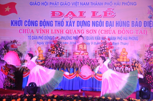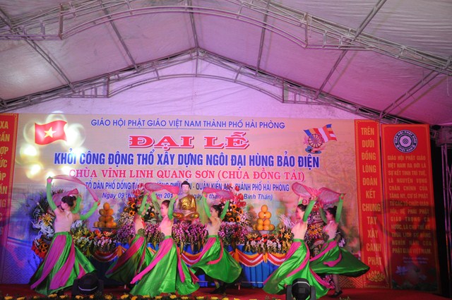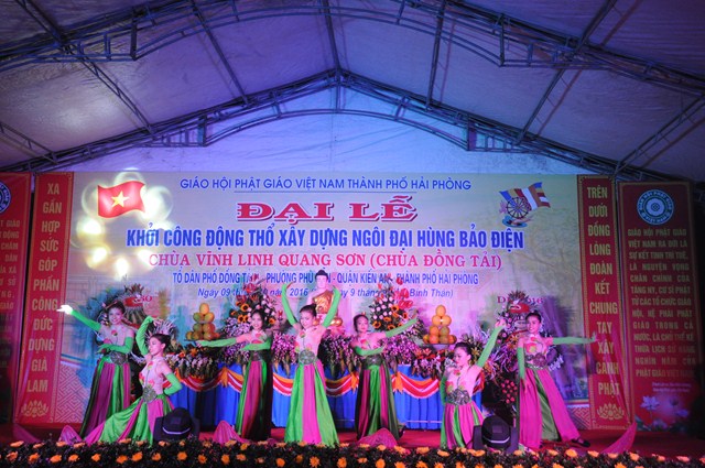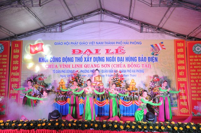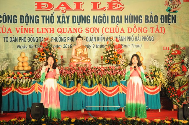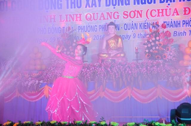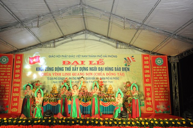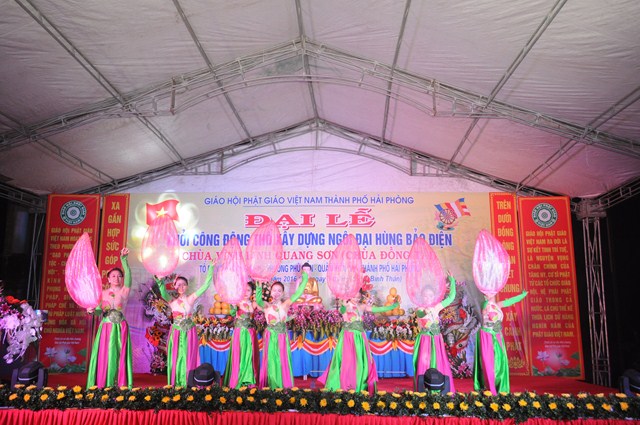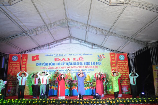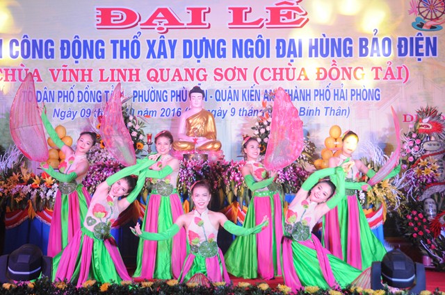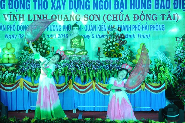 Đêm nhạc kính mừng Đại lễ Động thổ ngôi Đại Hùng Bảo Điện chùa Đồng Tải được dàn dựng dưới sự chỉ đạo nghệ thuật của Phật tử Phạm Nam Chung ( Huệ Văn) – Ủy viên Ban văn hóa TƯ GHPGV. Đêm nhạc được chia làm 3 chương. Chương I với chủ đề: Ơn nghĩa sinh thành, bao gồm 7 ca khúc ca ngợi công sinh thành, dưỡng dục của 2 đấng song thân. Chương II với chủ đề: Phật giáo đồng hành cùng Dân tộc, chương này bao gồm 8 tiết mục hát múa mang âm hưởng Phật giáo, ca ngợi chư Phật, Bồ Tát với các sáng tác của Nhạc sỹ: Vũ Ngọc Toản, cư sỹ Phật tử Diệu Thiện – Cù Lệ Duyên, nhạc sỹ Trần Tiến… Chương III cũng là chương khép lại đêm nhạc với chủ đề: Sống như những đóa hoa, bao gồm 4 ca khúc với gia điệu ngọt ngào, sâu lắng, mang đậm tính giáo dục và nhân văn sâu sắc.