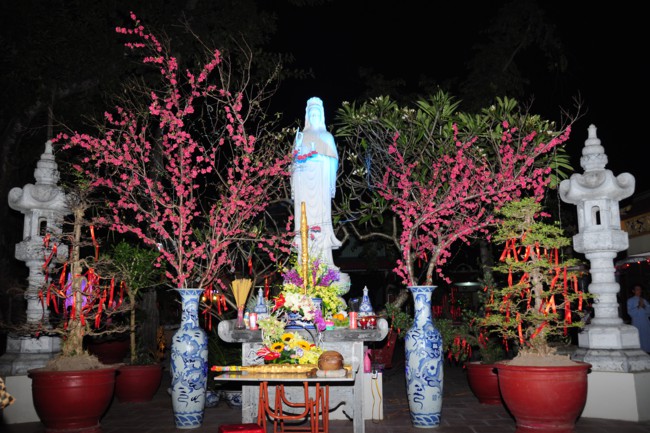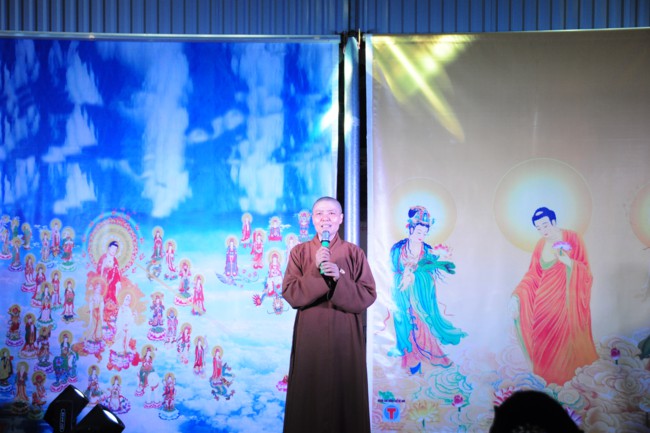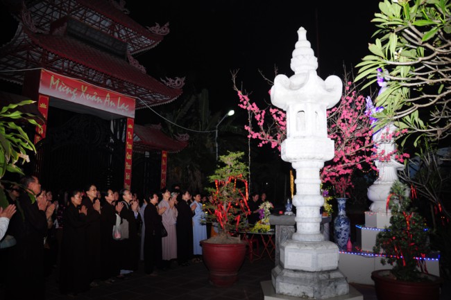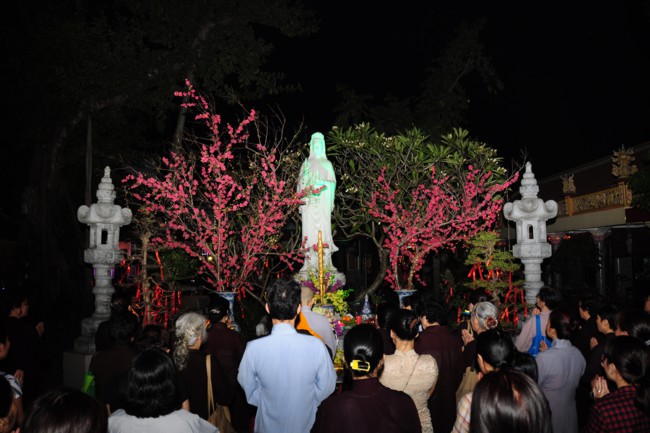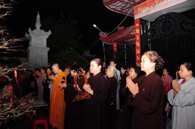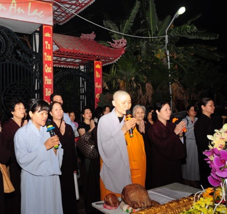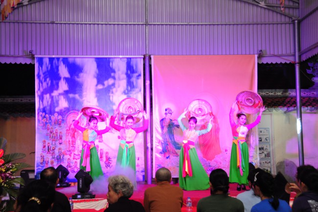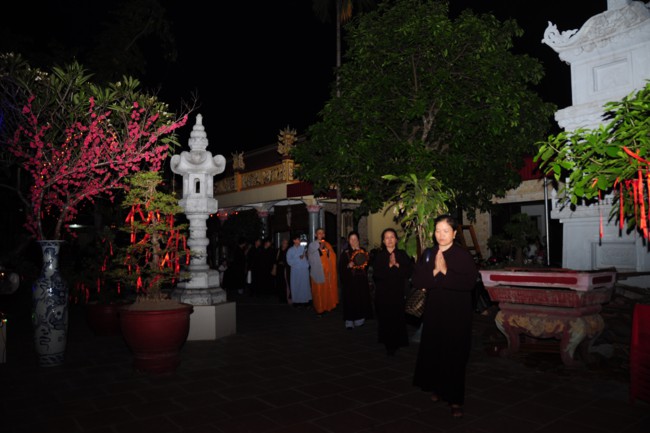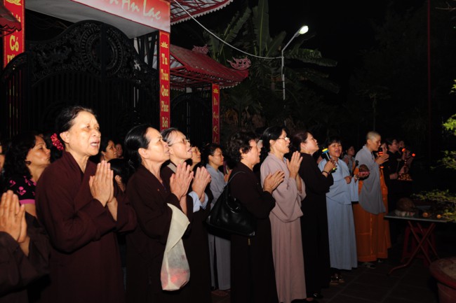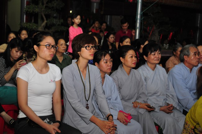 Trước khi kết thúc đêm nhạc, Chư tôn đức Tăng Ni cùng quý Phật tử đã làm lễ trì 21 biến chú đại bi, nhiễu Phật, niệm Phật, niệm danh hiệu của Bồ Tát Quán Thế Âm và thả hoa đăng cầu nguyện Quốc thái dân an, chúng sinh an lạc nhân dịp kỷ niệm ngày khánh đản của Ngài.