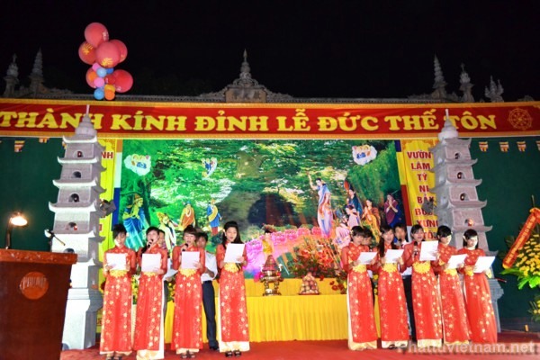 Trước khi kết thúc buổi lễ là chương trình thắp nến, hoa đăng cầu nguyện thế giới hòa bình, vạn dân an lạc, nhà nhà, người người luôn được sống trong ánh hào quang của mười phương Chư Phật và cùa đấng Từ Phụ Thích Ca nhân kỷ niệm ngày Ngài thị hiện ở cõi Ta Bà.