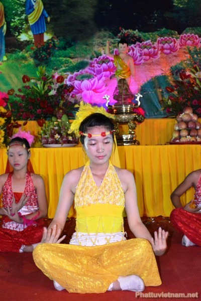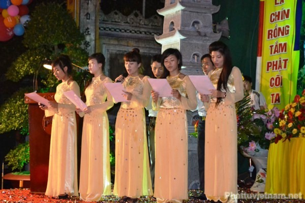 Mở đầu đại lễ là chương trình văn nghệ do một số ca sỹ thuộc đoàn ca múa nhạc Hải Phòng và các em thanh thiếu niên Phật tử huyện An dương cúng dàng mười phương chư Phật và chư tôn đức Tăng Ni nhân ngày đức Phật Thích Ca Mâu Ni đản sinh.