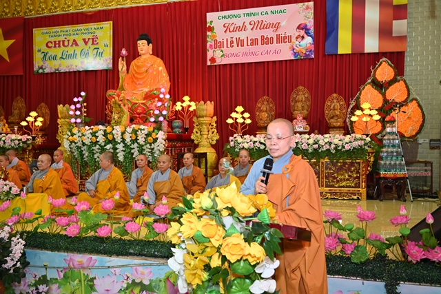 Tại buổi lễ, Ni sư Thích Tâm Chính – Trưởng Ban tổ chức đại lễ đã lên đáp từ và chia vẻ về nguồn gốc của lễ Vu Lan – Báo Hiếu. Theo đó, Lễ Hội Vu Lan – Báo Hiếu được coi là lễ hội của tình mẫu tử, tình phụ tử thiêng liêng, đồng thời cũng chính là Lễ hội của lòng tri ân, báo ân của con cái đối với cha mẹ; Vu Lan còn là dịp để mỗi người con Phật tôn vinh ân cha, nghĩa mẹ, cũng như đề cao tinh thần Hiếu đạo, nhắc nhở nhau hai chữ “tri ân’” để tìm về nguồn cội tâm linh và duy trì hơi ấm tình người trong kiếp sống nhân sinh.