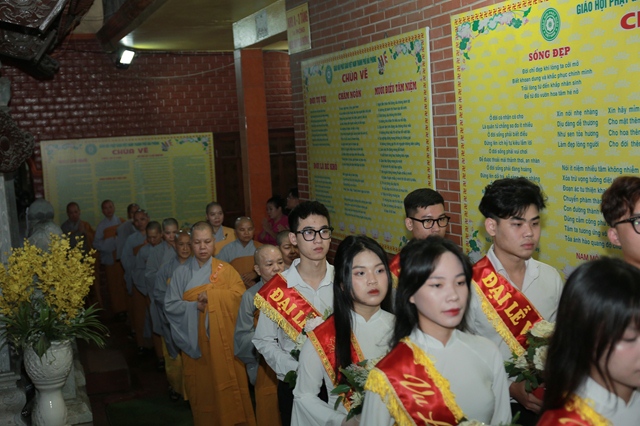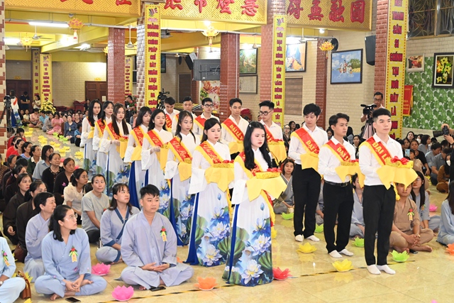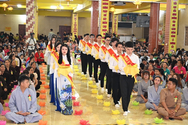 Các em thanh thiếu niên Phật tử trong đội dâng hoa