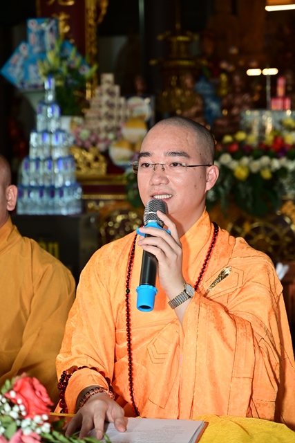 Đại đức Thích Từ Trí chia sẻ và căn dặn đôi bạn trẻ tại buổi lễ Hằng Thuận