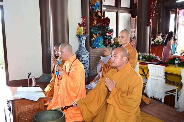Trước khi chính thức diễn ra lễ hằng thuận, chư tôn đức Tăng Ni đã cùng các Phật tử, đôi tân lang, tân nương, đại diện hai bên gia đình và toàn thể đại chúng đã vân tập tại chính điện lễ Phật cầu gia bị, cầu nguyện thế giới hòa bình, chúng sinh an lạc, cầu nguyện cho buổi lễ hằng thuận được thập phần viên mãn và cầu nguyện mười phương chư Phật gia hộ cho đôi bạn trẻ sống hạnh phúc bên nhau đến trọn đời.