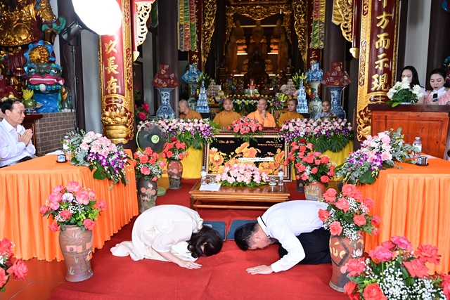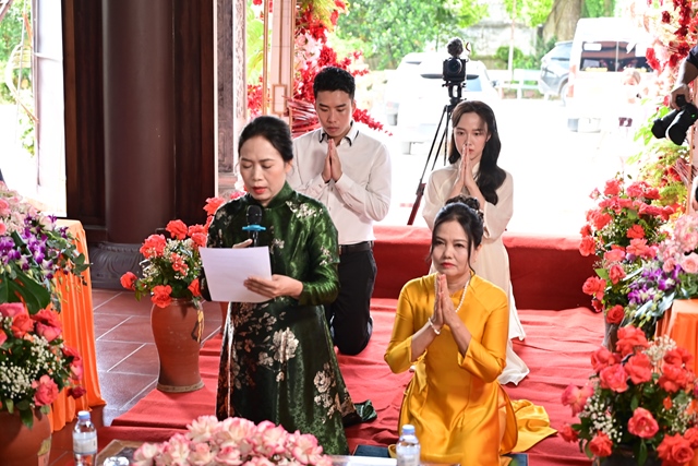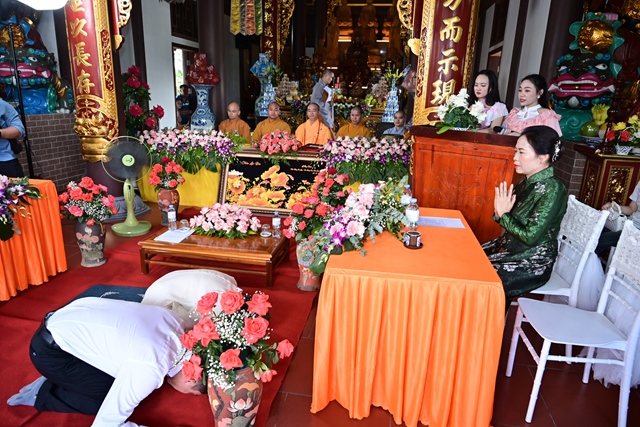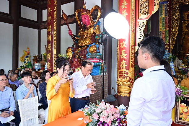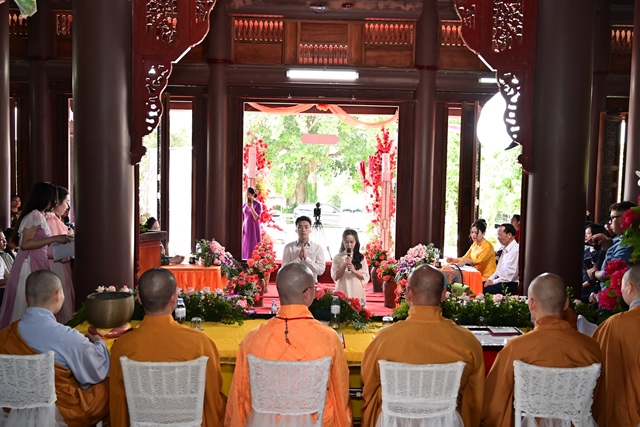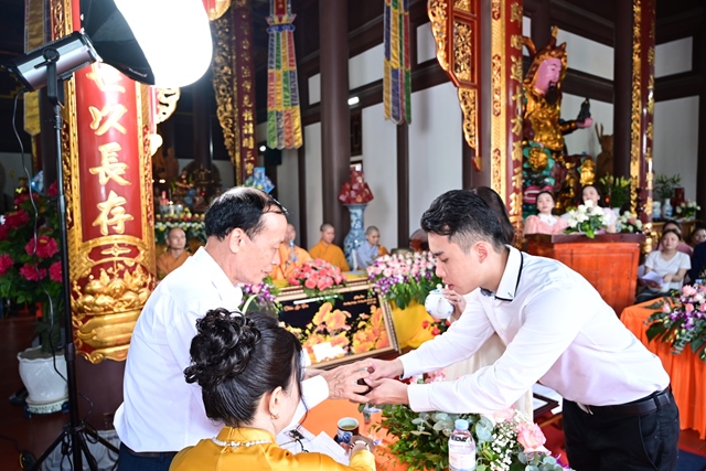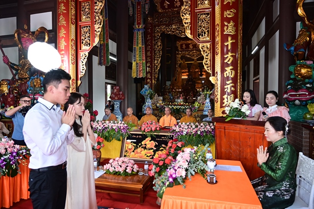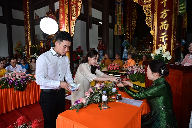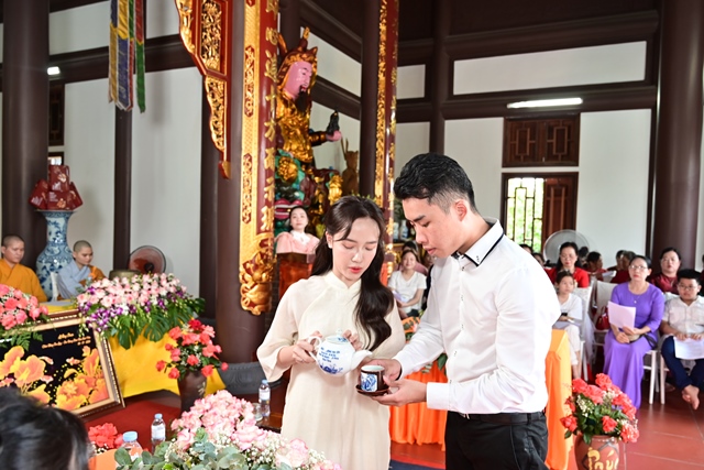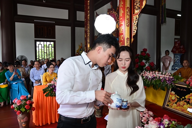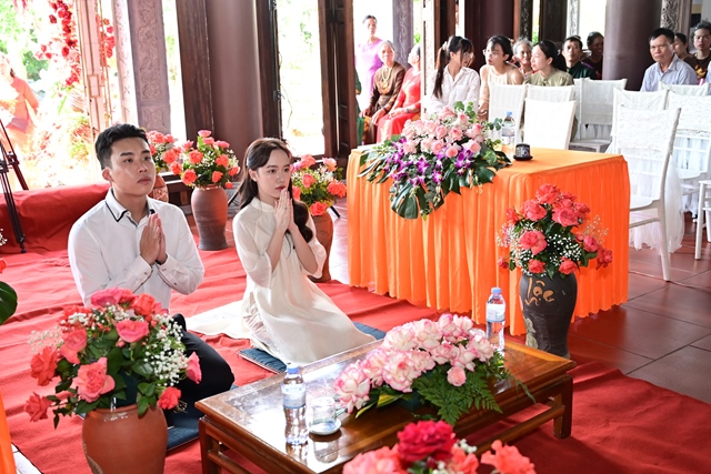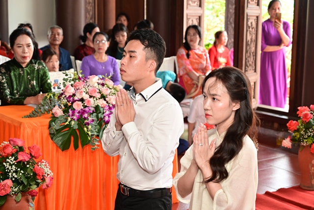 Dưới sự gia hộ của mười phương Chư Phật, cũng như sự chứng minh của Chư tôn đức Tăng Ni hiện tiền, đôi Tân lang – Tân nương đã làm lễ tạ ơn Tam Bảo, lễ thụ ân cha mẹ, lễ mời trà tri ân công sinh thành dưỡng dục của hai đấng song thân. Đồng thời, để thể hiện sự kính trọng, bình đẳng, tôn kính lẫn nhau trên tinh thần Từ bi – Vô ngã – Vị tha của Đạo Phật, đôi bạn trẻ đã lễ lạy nhau thông qua nghi thức: “ Lễ bình đẳng”.