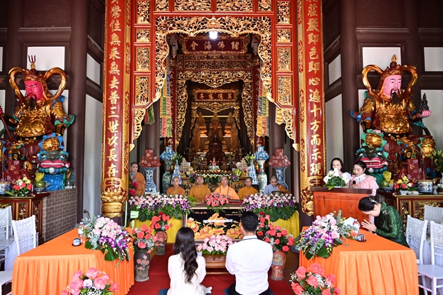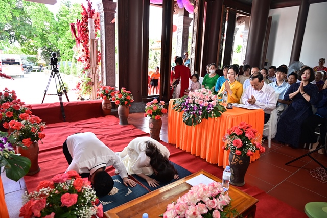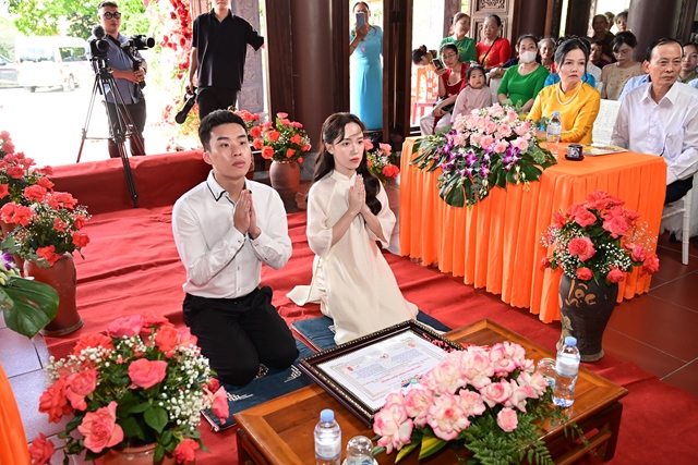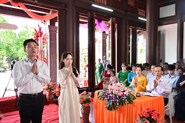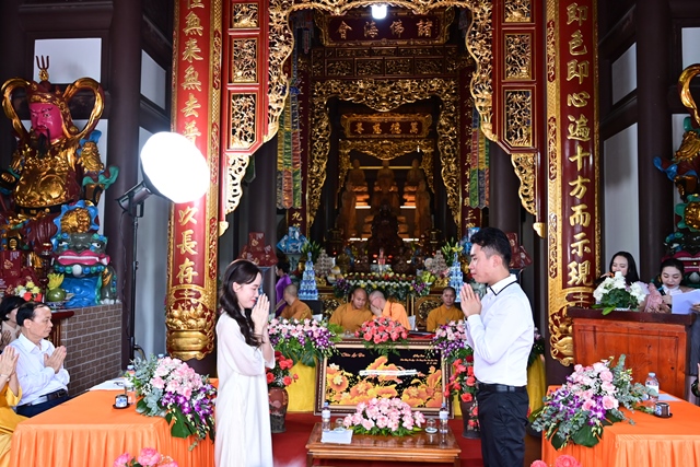 Đôi Tân Lang và Tân Nương về chùa Lại Sơn tổ chức lễ Hằng Thuận