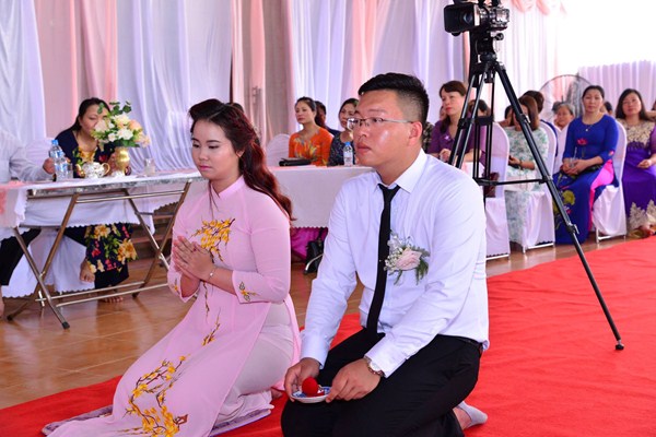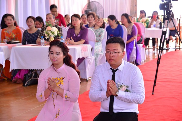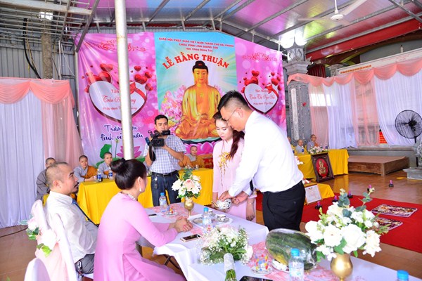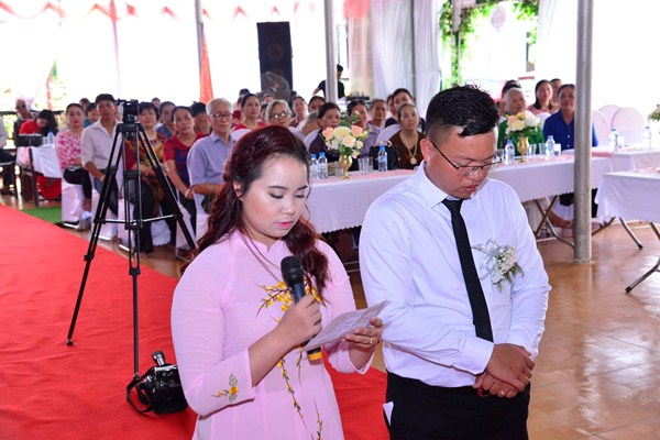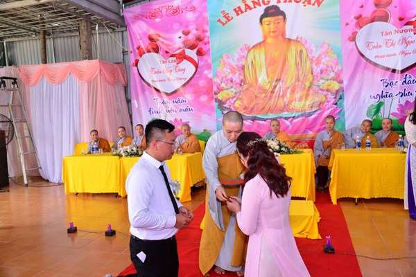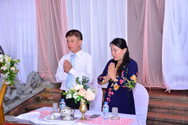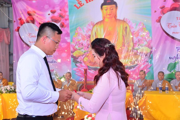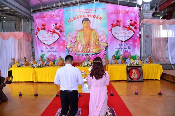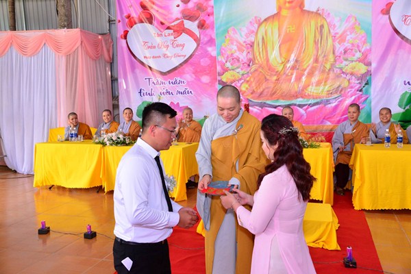 Kết thúc buổi lễ, Chư tôn đức Tăng ni, đôi tân lang, tân nương, gia đình nội ngoại hai bên, cùng toàn thể đại chúng đã cử hành nghi lễ niêm hương bạch Phật, cầu nguyện Quốc thái dân an, cầu nguyện cho đôi bạn trẻ luôn được sống trong ánh hào quang của mười phương chư Phật, sống một cuộc sống an vui và hạnh phúc.