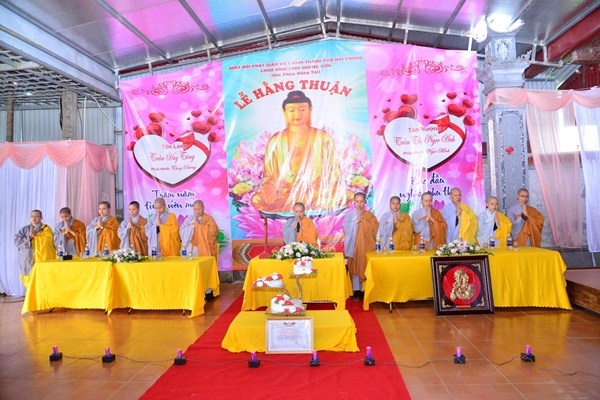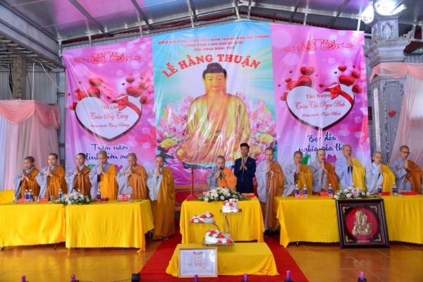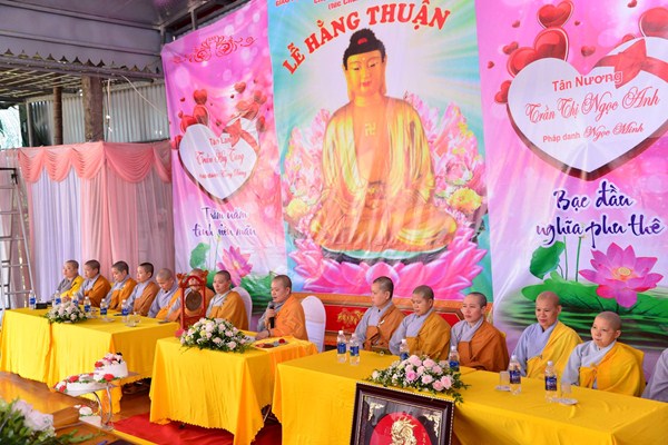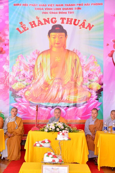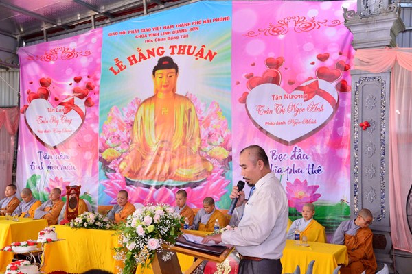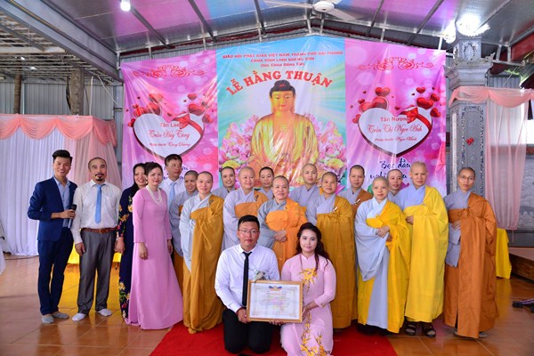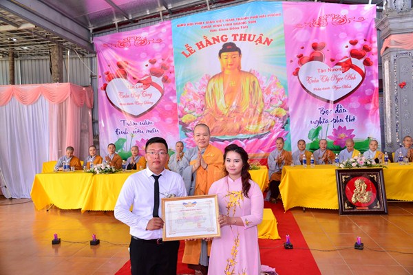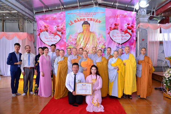 Quang lâm và chứng minh buổi lễ Hằng thuận có sự hiện diện của Ni Sư Thích Tâm Chính – Phó thư ký Ban từ thiện xã hội, ủy viên Ban hoằng pháp TƯ GHPGVN, trưởng Ban từ thiện xã hội GHPGVN thành phố Hải Phòng, trưởng BTS GHPGVN quận Hải An, Sư thầy. Thích Diệu Hướng – Trưởng ban thông tin truyền thông GHPGVN quận Kiến An, Trụ trì chùa Đồng Tải, trưởng BTC lễ hằng thuận, chư tôn đức Ni trụ trì một số chùa trên địa bàn thành phố Hải Phòng, cùng 2 bên gia đình nội ngoại, bạn bè, thân quyến của đôi tân lang, tân nương và các Phật tử đang tu học tại chùa Đồng Tải.