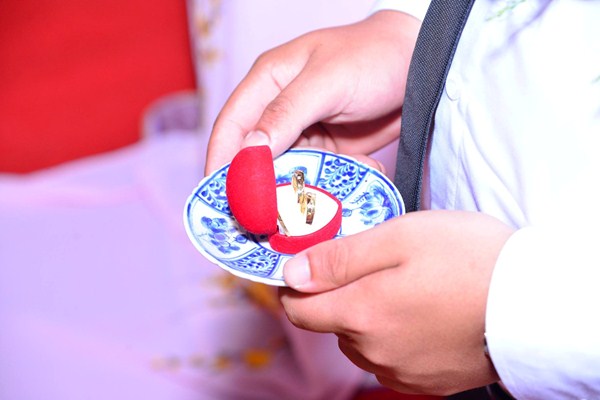 Tân lang và tân nương trao nhẫn cưới cho nhau