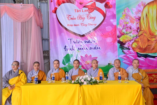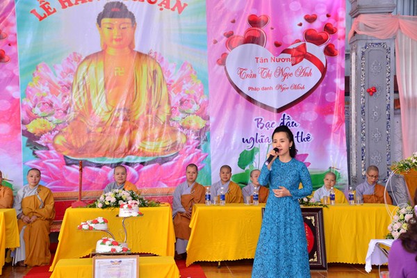 Tại buổi lễ, tân lang và tân nương đã được lắng nghe Ni Sư Thích Tâm Chính giảng giải về đạo nghĩa vợ chồng mà Đức Phật đã dạy trong kinh Thiện Sinh, kinh Sáu Phương và kinh Bảy Loại Vợ. Trong kinh Thiện Sinh, Đức Phật đã dạy rất rõ về bổn phận của của người vợ đối với chồng và gia đình bên chồng. Theo đó, Đức Phật đã dạy rằng: “ Sự thật là an lạc và hòa thuận trong gia đình phần lớn là ở nơi người phụ nữ” thông qua việc Ngài đã khuyên người phụ nữ những việc gì nên làm và việc gì không nên làm. Tiếp đó, Ni Sư đã giảng cho tân lang hiểu được bổn phận của mình đối với vợ, cũng như gia đình bên vợ, bổn phận của cha mẹ đối với con cái và con cái đối với cha mẹ.