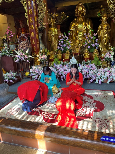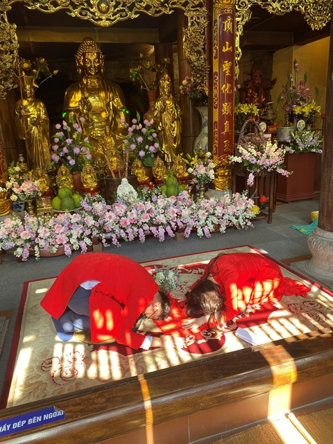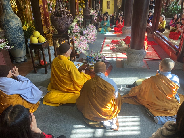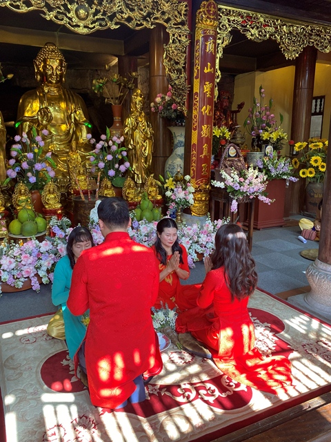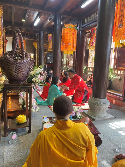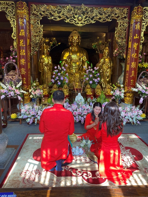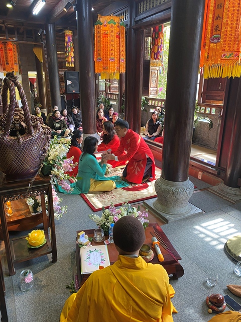 Trước sự gia hộ của mười phương Chư Phật và sự chứng minh của Chư tôn đức Tăng Ni, tân lang và tân nương đã làm lễ tạ ơn Tam Bảo, lễ dâng trà tri ân công sinh thành dưỡng dục của đấng sinh thành. Đồng thời, để thể hiện sự kính trọng, bình đẳng và sự tôn kính lẫn nhau khi đã nên vợ, thành chống, đôi bạn trẻ đã lễ lạy nhau thông qua nghi lễ: “ Lễ Bình Đẳng”.