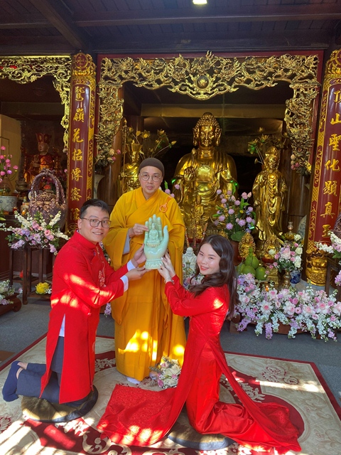 Trong ngày lễ trọng đại này, đôi bạn trẻ đã đối trước Tam Bảo, đối trước Chư tăng dâng lời phát nguyện sẽ luôn yêu thương nhau, luôn tôn trọng nhau, luôn bảo vệ cho hạnh phúc của gia đình để hạnh phúc đó được trường tồn mãi mãi và đón nhận giấy chứng nhận Lễ Hằng Thuận, cũng như những món quà chúc phúc ý nghĩa từ đại đức trưởng Ban tổ chức.