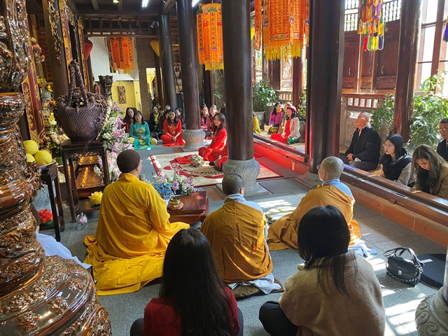 Trước khi đôi bạn trẻ trao nhẫn cho nhau, Đại đức bản tự đã làm lễ chú nguyện vào đôi nhẫn cưới. và đã giảng cho đôi bạn trẻ hiểu về ý nghĩa của chiếc nhẫn cũng như ý nghĩa của chữ “Nhẫn” đối với hạnh phúc trong mỗi gia đình.” Nhẫn” ở đây là sự nhẫn nhịn, vợ chồng phải biết nhường nhịn, nhẫn nhịn nhau, tôn trọng nhau; “Nhẫn” ở đây còn chính là sự tu dưỡng đạo đức và tu dưỡng phẩm hạnh. Một gia đình có êm ấm, có được thuận hòa hay không, phần lớn là do sự nhẫn nhịn quyết định.