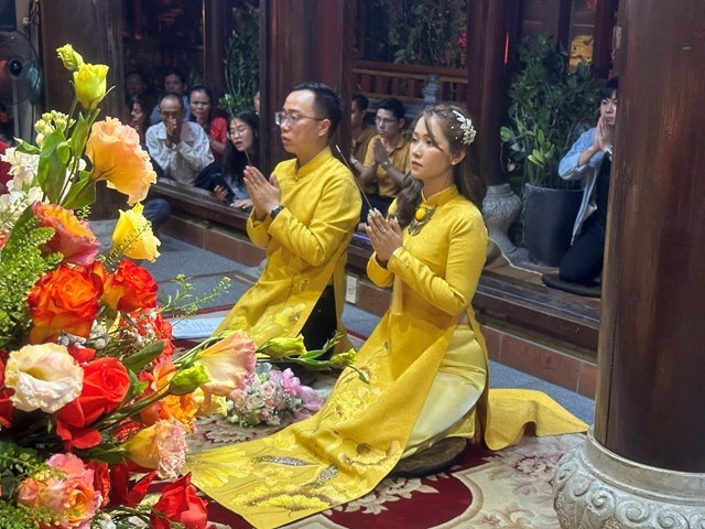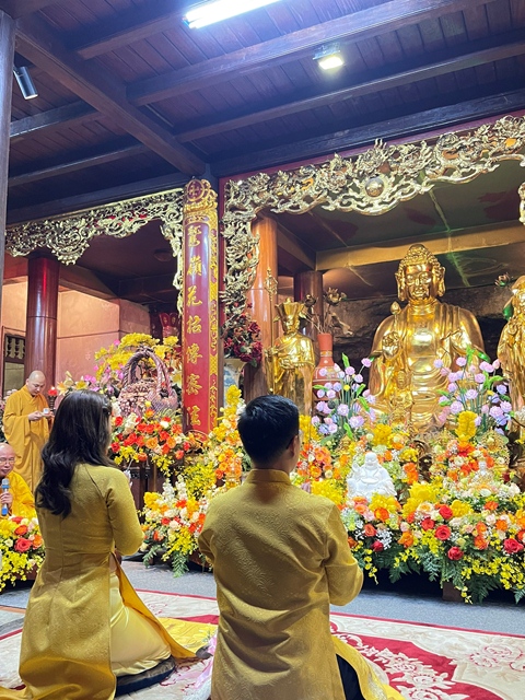 Trước sự gia hộ của mười phương Chư Phật và sự chứng minh của Chư tôn đức Tăng Ni, tân lang và tân nương đã làm lễ tạ ơn Tam Bảo, lễ dâng trà tri ân công sinh thành dưỡng dục của hai đấng sinh thành. Đồng thời, để thể hiện sự kính trọng, bình đẳng và sự tôn kính lẫn nhau khi đã nên vợ, thành chống, đôi bạn trẻ đã lễ lạy nhau thông qua nghi lễ “ Lễ Bình Đẳng”.
