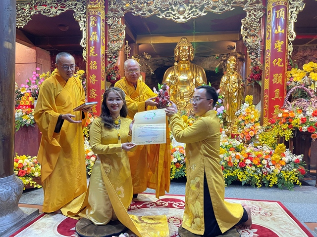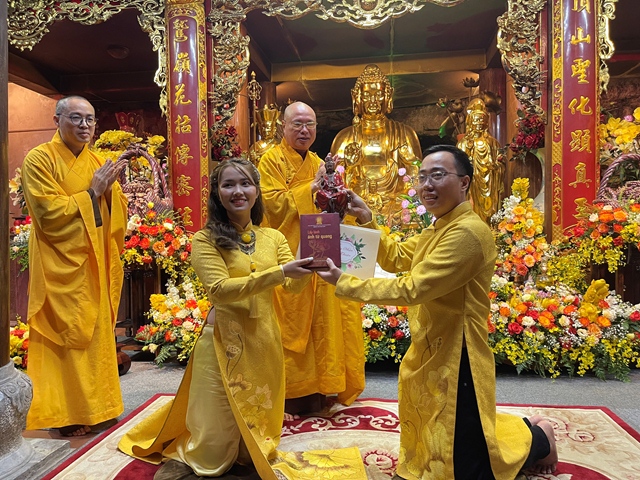 Trong ngày lễ trọng đại, đôi bạn trẻ đã đối trước Tam Bảo, đối trước Chư tăng dâng lời phát nguyện sẽ luôn yêu thương nhau, luôn tôn trọng nhau, luôn bảo vệ cho hạnh phúc của gia đình để hạnh phúc đó được trường tồn mãi mãi và đón nhận giấy chứng nhận Lễ Hằng Thuận và những món quà chúc phúc đầy ý nghĩa từ Ban tổ chức.