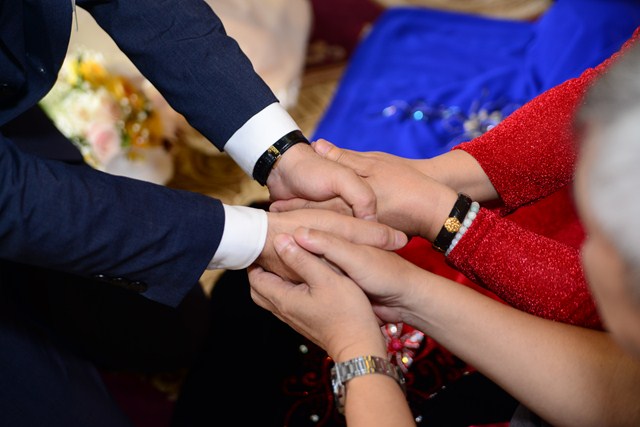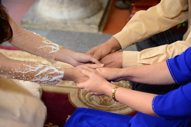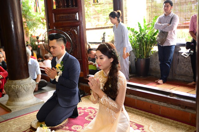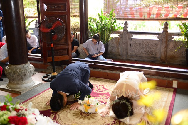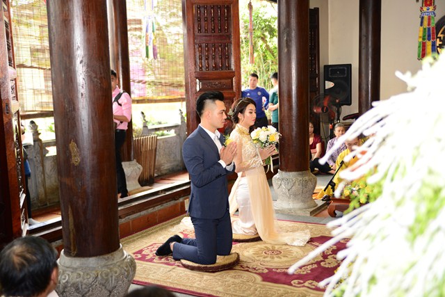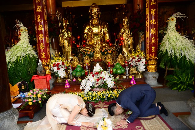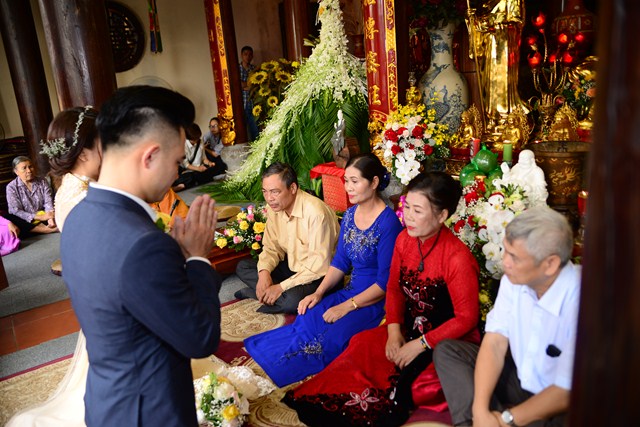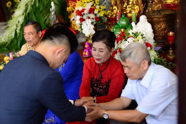 Dưới sự gia hộ của mười phương Chư Phật và sự chứng minh của Chư tôn đức Tăng Ni, đôi tân lang, tân nương đã đối trước Tam Bảo làm lễ tạ ơn Tam Bảo, đồng thời phát nguyện sẽ yêu thương nhau trọn đời, làm tròn trách nhiệm và bổn phận của mình. Để tỏ lòng thành kính, tri ân công sinh thành dưỡng dục, báo đáp công ơn của hai đấng song thân, đôi bạn trẻ đã làm lễ tạ ơn cha mẹ, cũng để thể hiện sự kính trọng, bình đẳng, tôn trọng lẫn nhau, đôi bạn trẻ đã lễ lạy nhau thông qua nghi lễ “Bình Đẳng”.