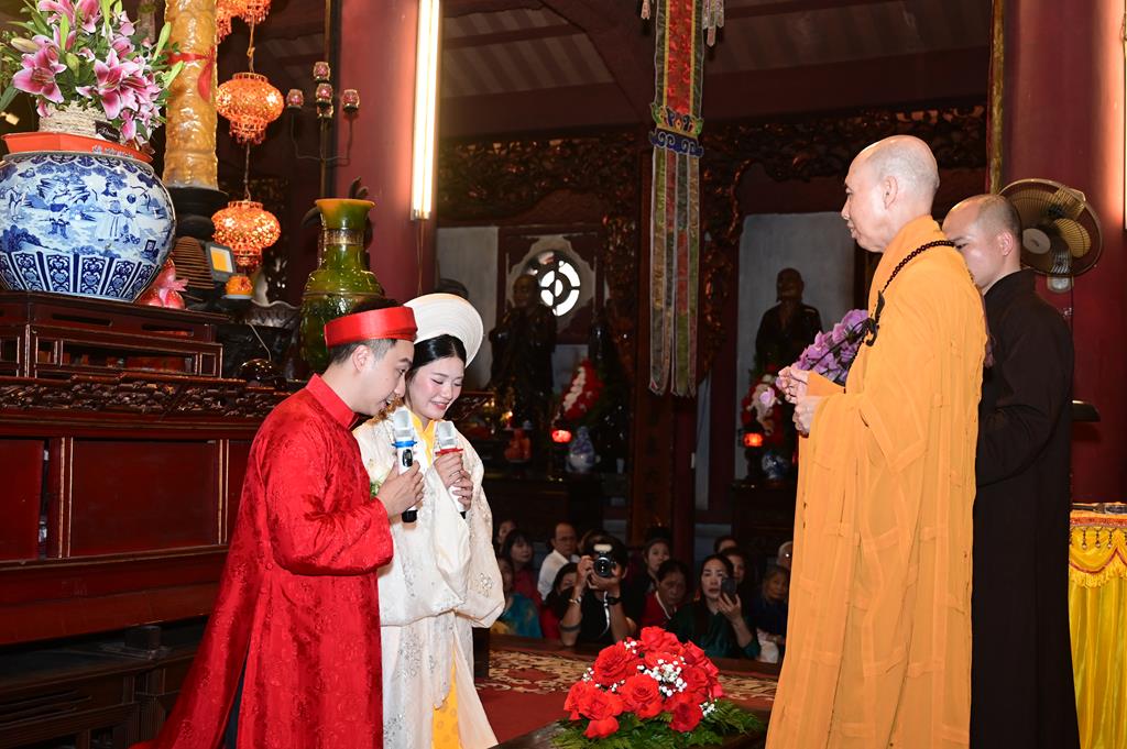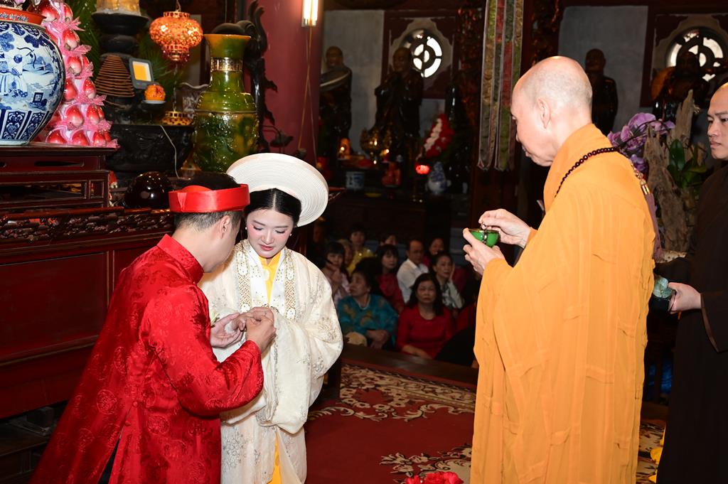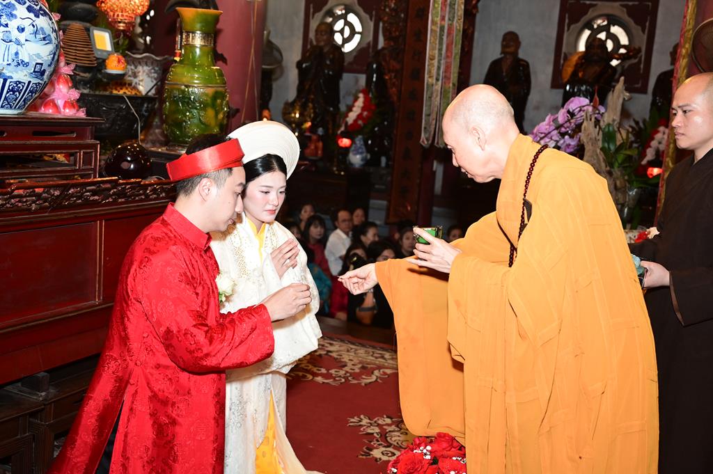 Trước sự chứng minh của chư Tôn đức và sự chứng kiến của hai bên gia đình, đôi bạn trẻ đã dâng lên lời phát nguyện từ sâu thẳm đáy lòng, hứa sẽ luôn yêu thương nhau, luôn tôn trọng nhau, luôn bảo vệ cho hạnh phúc gia đình được trường tồn mãi mãi và nguyện sẽ hành trì theo đúng lời Phật dạy, đồng thời sẽ cố gắng siêng năng tu tập để trở thành những người phật tử thuần thành, tinh tấn hộ trì Tam Bảo.