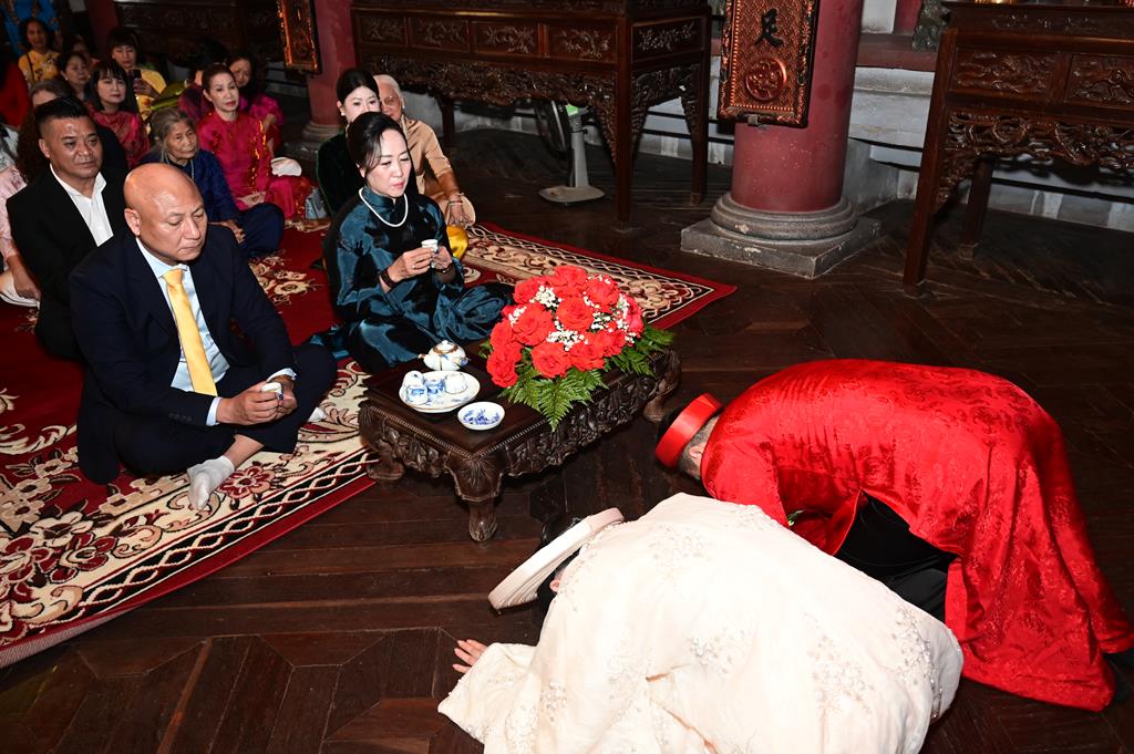 Đôi bạn trẻ dâng trà tri ân cha mẹ