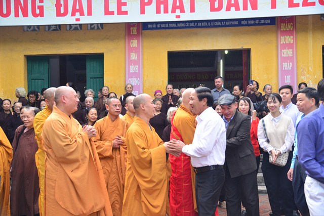 Về phía khách mời chính quyền có sự hiện diện của ông: Lê Văn Thành – Ủy viên Ban Chấp hành Trung ương Đảng, Bí thư Thành ủy, Chủ tịch Hội đồng nhân dân Thành phố Hải Phòng; ông Nguyễn Văn Tùng – Chủ tịch UBND thành phố Hải Phòng, cùng các ông bà lãnh đạo đại diện cho các cấp ủy Đảng, các ban ngành đoàn thể của thành phố Hải Phòng, quận Lê Chân và đông đảo quý nam nữ cư sỹ Phật tử đang tu học tại một số chùa trên địa bàn thành phố.