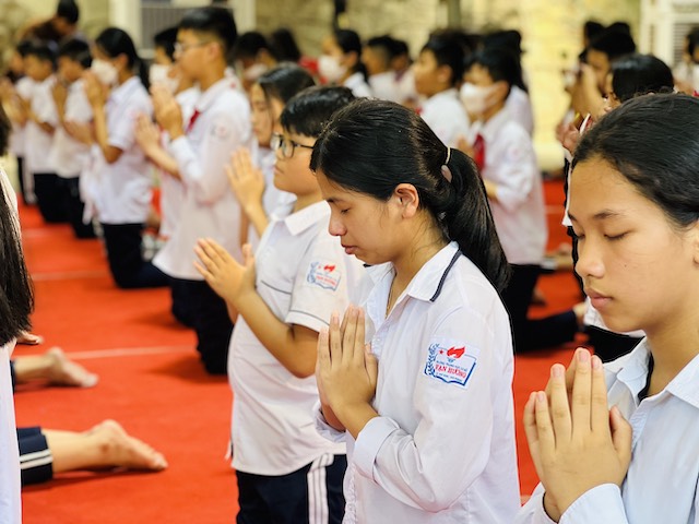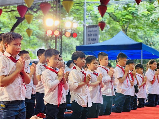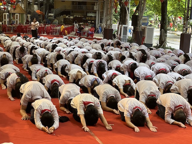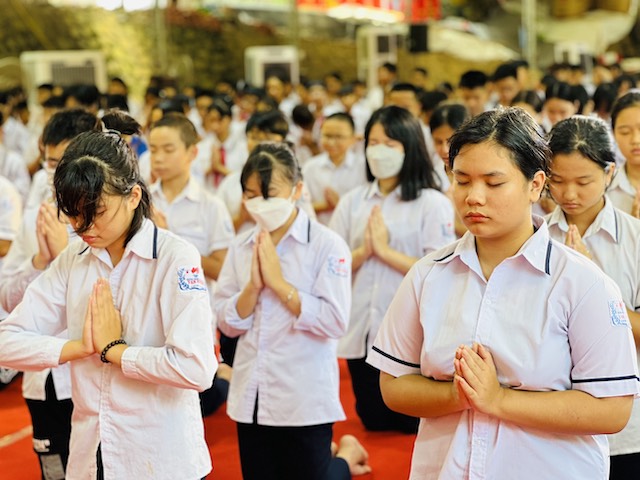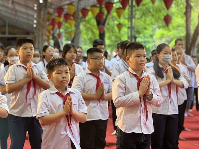 Tham dự khóa tu còn có sự hiện diện của các thầy cô giáo trong Ban giám hiệu, thầy cô giáo chủ nhiệm các lớp của trường THCS Ngọc Hải, THCS Vạn Sơn và THCS Vạn Hương, cùng gần 1.000 học sinh đang học tập tại các trường THCS trên địa bàn quận Đồ Sơn.