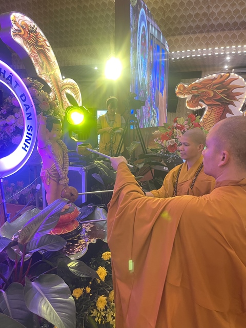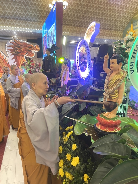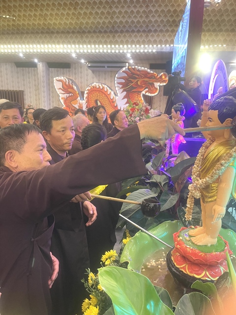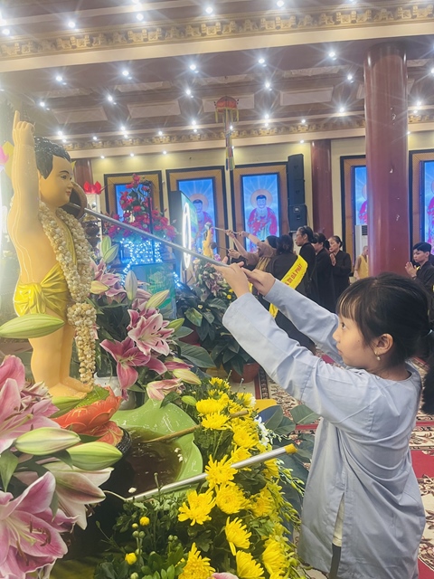 Trước khói hương trầm quyện tỏa, được sự gia hộ của mười phương chư Phật, toàn thể đại chúng đã cử hành nghi lễ dâng hương, bạch Phật, cầu nguyện thế giới hòa bình, chúng sinh an lạc, Phật pháp trường tồn và cử hành nghi lễ Mộc dục (tắm Phật) theo nghi thức truyền thống của Phật giáo.