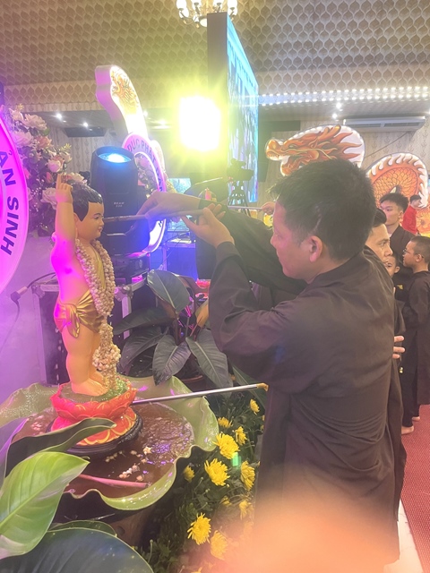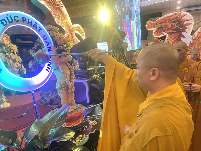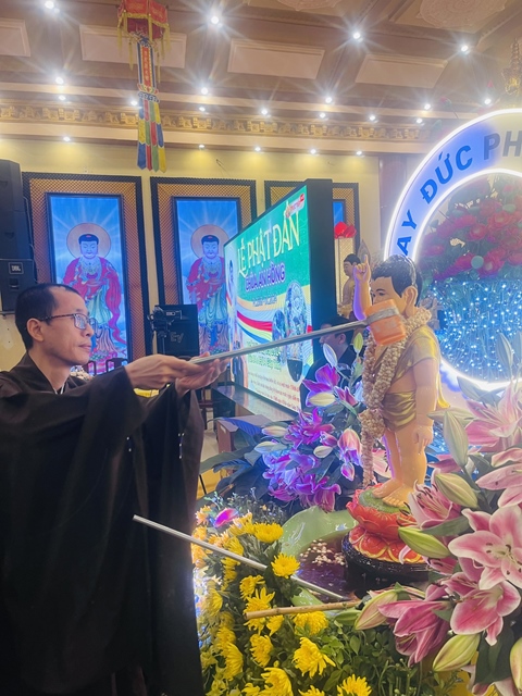 Đại đức Thích Giác Hảo trụ trì chùa An Hồng cử hành nghi lễ tắm Phật