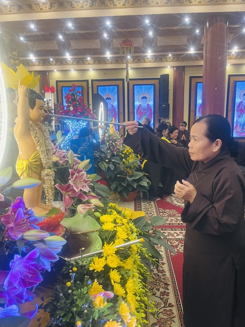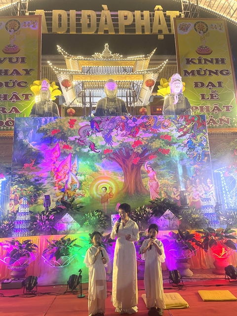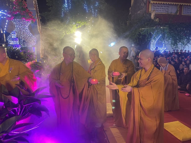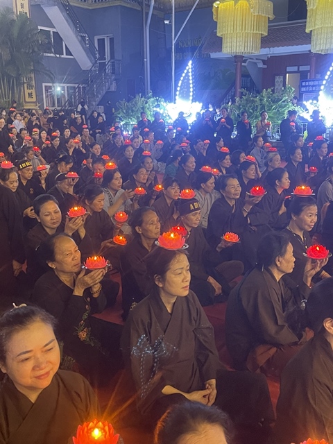 Được biết, buổi tối trước đó đã diễn ra đêm hoa đăng kính mừng sự kiện Đức Phật đản sinh, toàn thể những người con Phật đã một lòng thành kính dâng những ngọn hoa đăng kính dâng lên Đức từ phụ Bản Sư Thích Ca Mâu Ni Phật, cầu nguyện cho âm siêu, dương khánh, cầu nguyện cho mỗi tự thân tinh tấn tu học trên con đường tu học, tìm cầu giác ngộ, giải thoát, nguyện hết báo thân này được sinh sang cõi Cực Lạc của Đức Phật A Di Đà, quyết một lòng tu theo pháp môn mình đã lựa chọn.