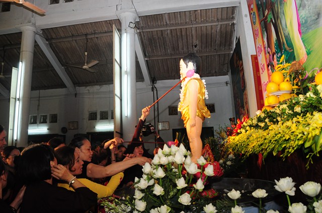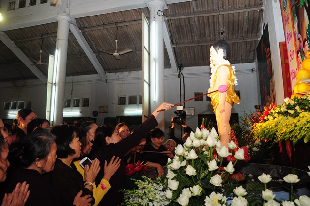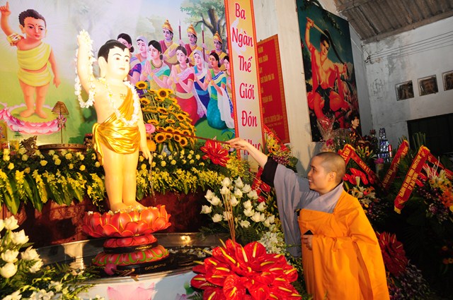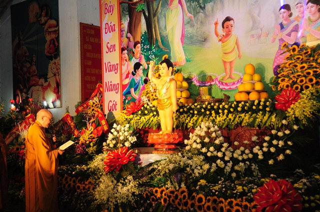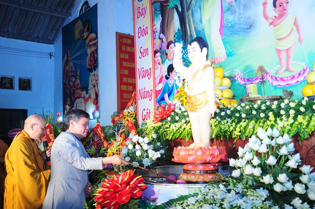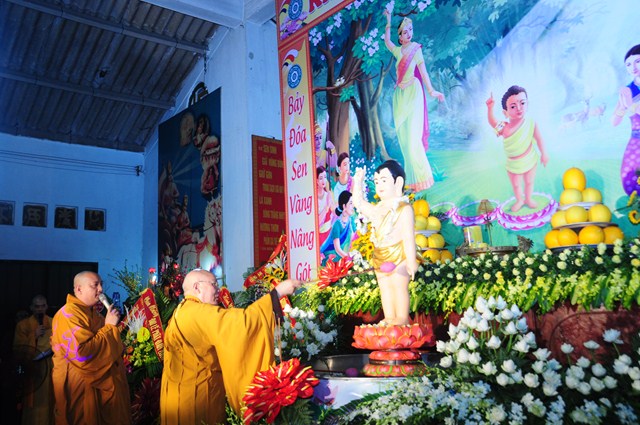 Trước khi kết thúc buổi lễ, Chư tôn đức Tăng Ni, đại biểu chính quyền thành phố cùng đồng bào Phật tử đã làm lễ dâng hương, bạch Phật, cầu nguyện Quốc thái, dân an và làm lễ tắm Phật theo nghi thức Phật giáo truyền thống trong không khí trang nghiêm, thành kính, linh thiêng và đại hoan hỷ nhân dịp Phật đản đang về.