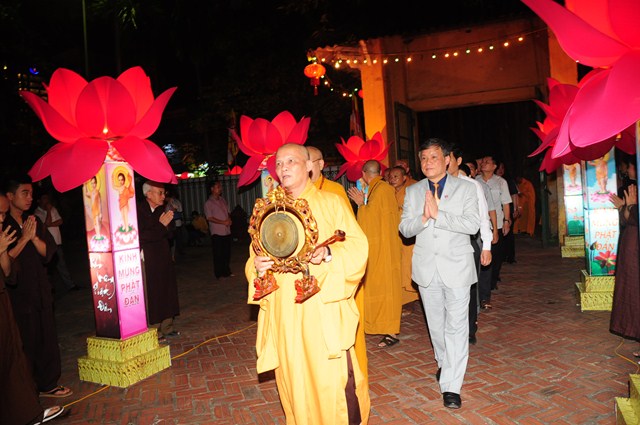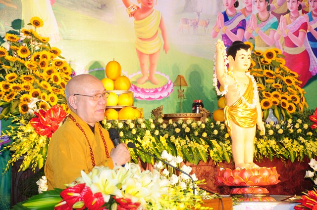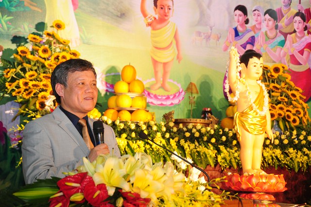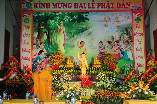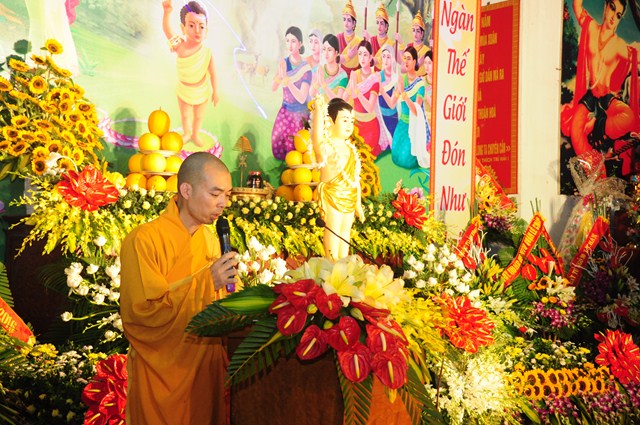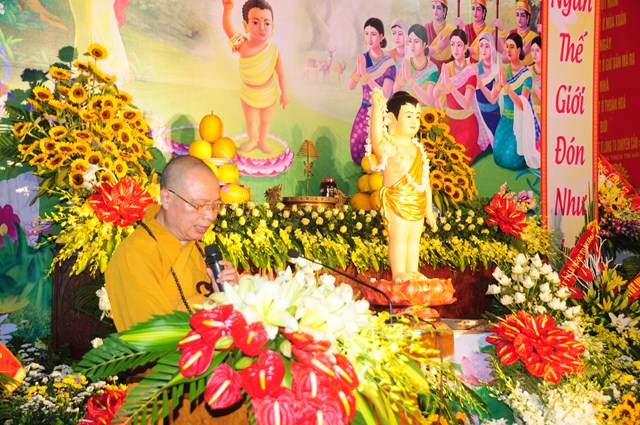 Tiếp đó, TT. Thích Thanh Giác – Phó trưởng Ban thường trực BTS GHPGVN Tp. Hải Phòng đã lên tuyên đọc Diễn văn khai mạc Đại lễ Phật đản PL. 2560 – DL. 2016 của Hòa thượng Thích Thiện Nhơn – Chủ tịch HĐTS TƯ GHPGVN. Trong diễn văn khai mạc Đại lễ Phật đản, Hòa thượng chủ tịch HĐTS TƯ GHPGVN đã nêu rõ: “ Đức Phật đản sinh là một sự kiện trọng đại, thiêng liêng, một sự kiện hy hữu của toàn nhân loại. Ngài là bậc Đạo sư Giác ngộ tỏa ánh sáng năng lượng xóa tan màn vô minh của xã hội phân hóa giai cấp, giàu nghèo và bất công mà căn nguyên bởi tại lòng tham, sân, si của con người. Vì giáo lý trong sáng và toàn bích của Ngài là suối nguồn từ bi, trí tuệ đưa con người đến một đời sống hướng thượng đầy tình yêu thương vô ngã, thấm nhuần hương vị giải thoát giác ngộ.”
