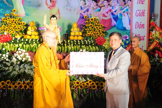 Nhân dịp này, ông Nguyễn Xuân Bình đã tặng hoa, tặng quà chúc mừng nhân dịp Đại lễ Phật đản PL. 2560 – DL. 2016 cho Ban trị sự GHPGVN Tp. Hải Phòng và có bài phát biểu rất ý nghĩa, gần gũi nhân sự kiện Phật giáo trọng đại này. Ông đã thay mặt cho HĐND, UBND, UB MTTQVN thành phố gửi lời chúc mừng tốt đẹp, lồng nhiệt nhất tới Chư tôn đức Tăng Ni, đồng bào Phật tử và nhân dân thành phố Hải Phòng có một mùa Phật đản thật ý nghĩa và an lạc. Ông cũng khẳng định rằng đây là một hoạt động Phật sự hết sức ý nghĩa. Suốt mấy ngàn năm nay, đạo Phật và tư tưởng của Đức Phật luôn đồng hành cùng Dân tộc, cùng với quê hương Đất nước và trong sự phát triển của Đất nước, của thành phố Hải Phòng thì các vị chức sắc Phật giáo, các Phật tử đã luôn cùng với thành phố có những đóng góp rất vào sự nghiệp xây dựng và phát triển thành phố. Bên cạnh đó, các vị chức sắc Phật giáo luôn gương mẫu chấp thành theo đúng chủ trương, chính sách của Đảng, pháp luật của Nhà nước và thành phố, không những thế chư tôn đức Tăng Ni còn vận động, hướng dẫn bà con Phật tử thực hiện theo. Điều đó đem lại kết quả rất tốt đẹp, góp phần tích cực, to lớn vào sự nghiệp xây dựng và bảo vệ Đất nước. ông cũng mong rằng Phật giáo Việt Nam sẽ luôn gắn bó, đồng hành cùng Dân tộc, cùng thực hiện theo đúng chủ trương, phương châm cua Phật giáo Việt Nam. Đó là, Đạo Pháp – Dân tộc – Chủ nghĩa xã hội. Đồng thời phát huy tinh thần hộ Quốc, an dân, tinh thần Từ Bi – Hỷ Xả của Đạo Phật, cùng đoàn kết xây dựng thành phố quê hương ngày càng phát triển, giàu đẹp hơn nữa.