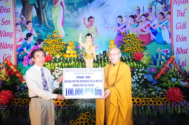 Trên tinh thần Từ Bi, Cứu khổ, Ban vui của Nhà Phật và nhân dịp kính mừng 2640 năm ngày sinh của Đức Bản Sư Thích Ca Mâu Ni Phật, Ban trị sự GHPGVN thành phố Hải Phòng cũng đã trao 100 triệu đồng cho Hội bảo trợ trẻ em khuyết tật và mồ côi của thành phố Hải Phòng.