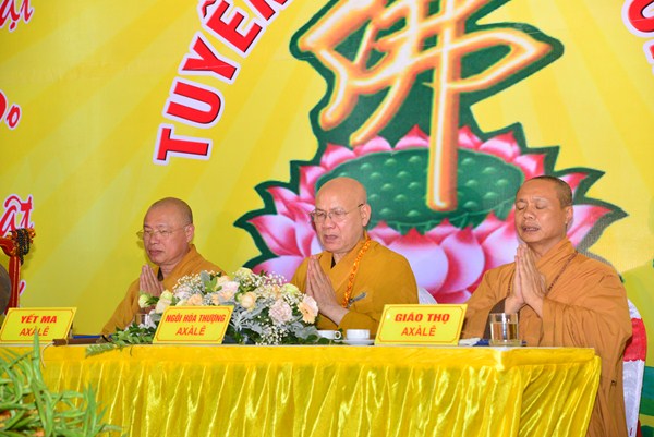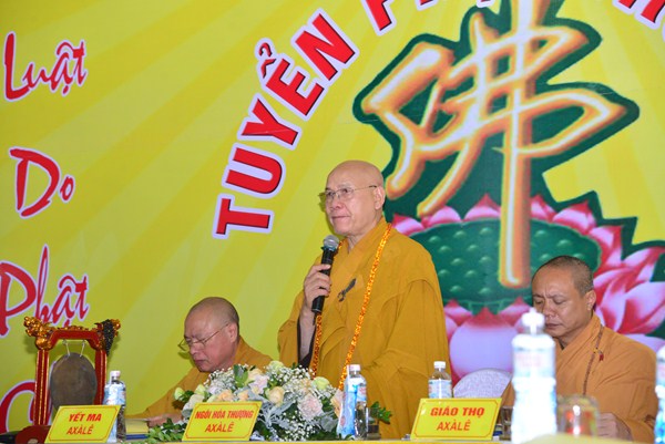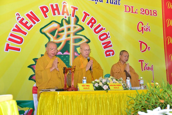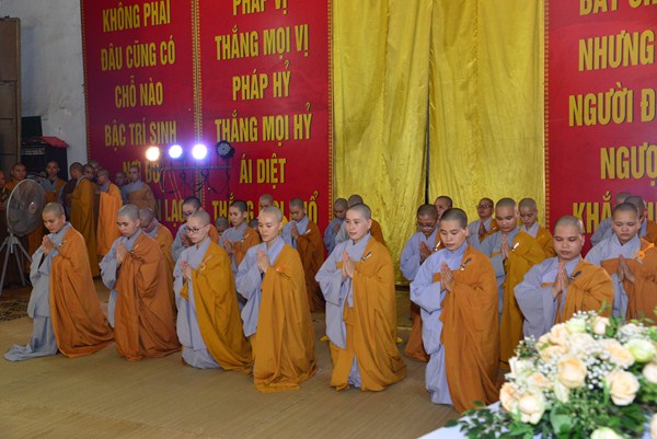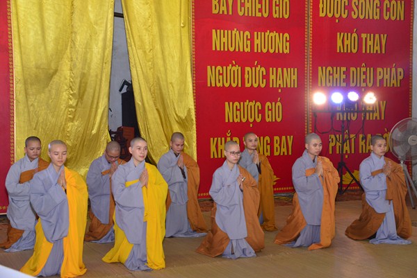 Nhân dịp này, Hòa thượng đã gửi lời chúc mừng, sách tấn các vị tân Tỷ Khiêu, tân Sa Di cần phải nghiêm trì giới luật, lấy giới luật làm thầy và luôn biết nghe lời, lắng nghe những lời chỉ dạy của thầy nghiệp sư, hết lòng phụng sự Tam Bảo, không được cống cao ngã mạn, luôn phải biết khiêm tốn, kính trên, nhường dưới, như vậy mới xứng đáng đứng trong hàng ngũ tăng đoàn, xứng đáng là trưởng tử của Như Lai.