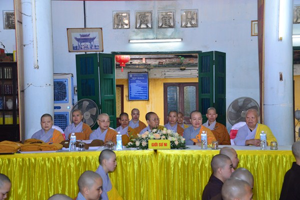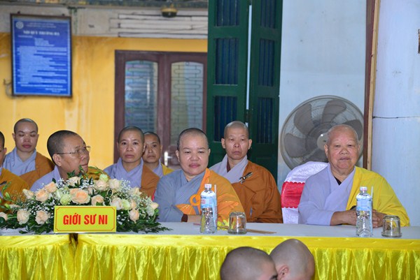 Hội đồng giới sư đã cung thỉnh Hòa thượng Thích Quảng Tùng – Phó chủ tịch HĐTS TƯ GHPGVN, trưởng BTS lâm thời GHPGVN thành phố Hải Phòng ngôi vị đàn đầu Hòa Thượng, Thượng tọa Thích Thanh Giác – Phó trưởng Ban thường trực Ban Hoằng Pháp TƯ GHPGVN, Phó trưởng ban thường trực BTS lâm thời GHPGVN thành phố Hải Phòng ngôi Yết Ma A Xà Nê và cung thỉnh Thượng tọa Thích Tục Khang – Phó BTS lâm thời GHPGVN thành phố Hải Phòng ngôi Giáo Thọ A Xà Lê, cùng 7 vị tôn chứng sư Tăng và 10 vị giới sư Ni.